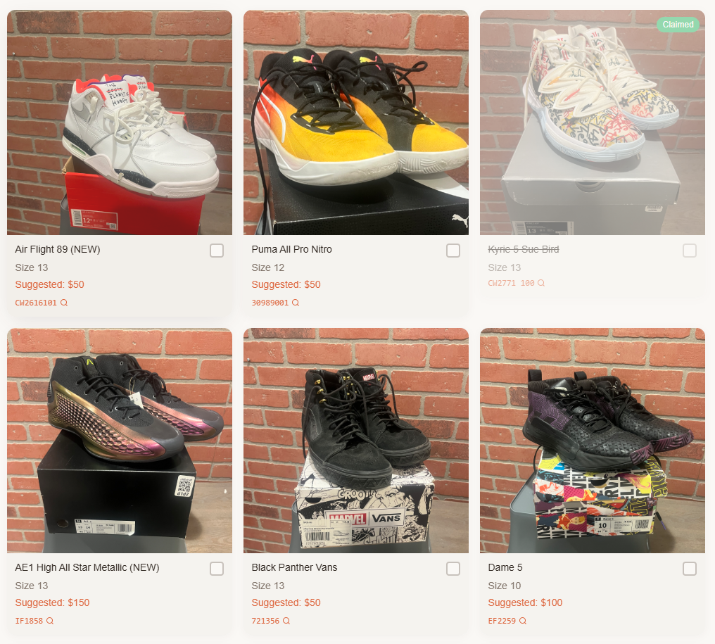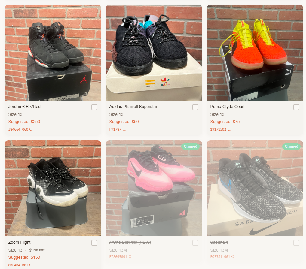 You can claim a pair of shoes and make a donation (or if you'd like to, we can meet up in person and pay with Venmo as well)