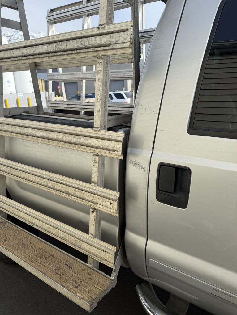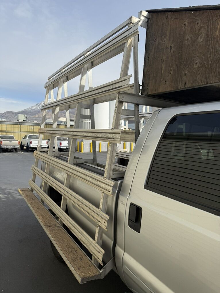 VenmoIt’s an all aluminum glass rack that will not rust in good condition. It fits in an F350 Ford 2001 possibly can fit in other pick up trucks that are a long bed 8 foot bed.