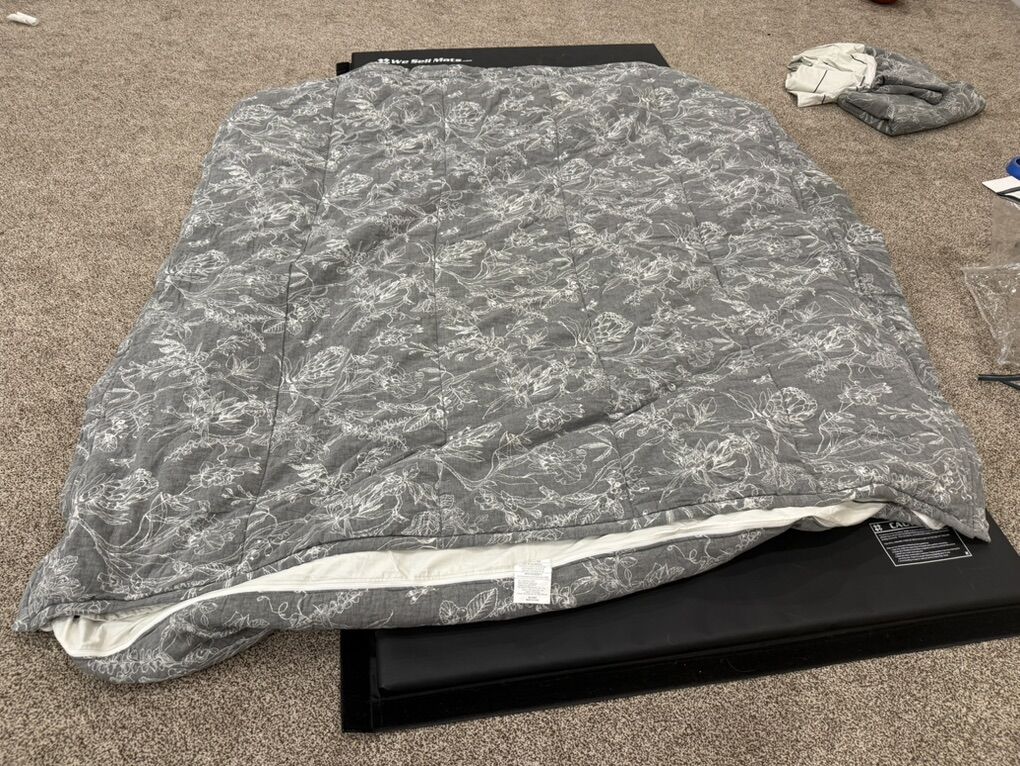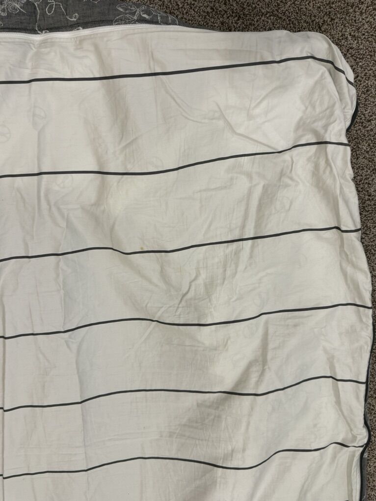 King Grace cotton Zipbase. Has 2 shams and 2 sheets. Few signs of wear as shown. Spare sheet good condition. 77JAN $524 new