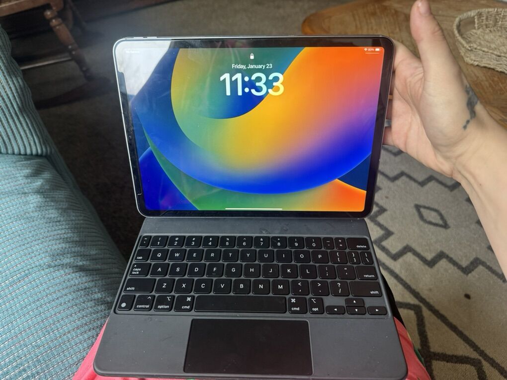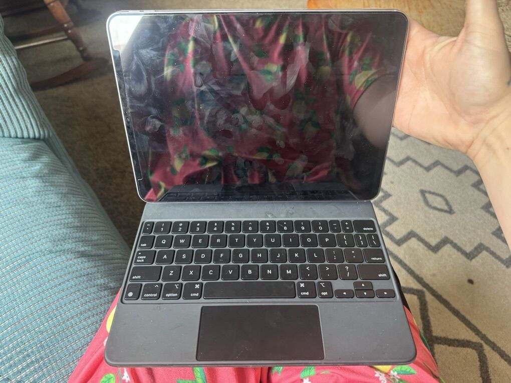 Absolutely no scratches or scuffs on the screen protector or the iPad itself in perfectly new condition and works very well. We bought it thinking we would use it more and we haven’t touched it since buying. It does not come with a charger though firm on price first come first serve serious inquiries only.