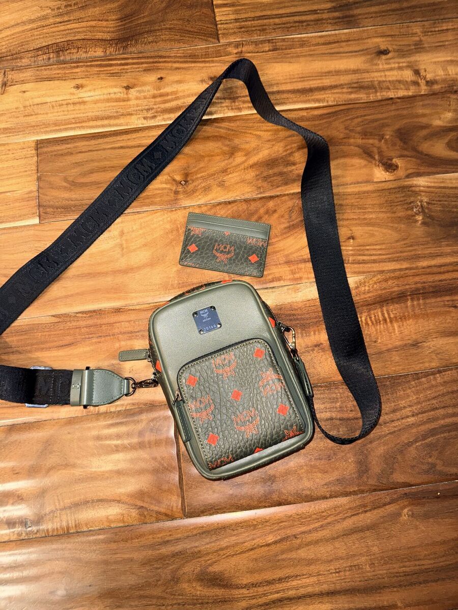 VenmoBrand New MCM Mini Visetos Crossbody Bag in the color military green with an orange logo and accents. Also comes with a small wallet. Cash or Venmo. Firm on Price