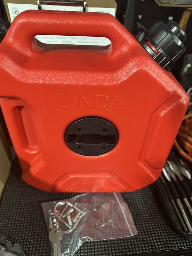 New unused Jerry can with mounting brackets.