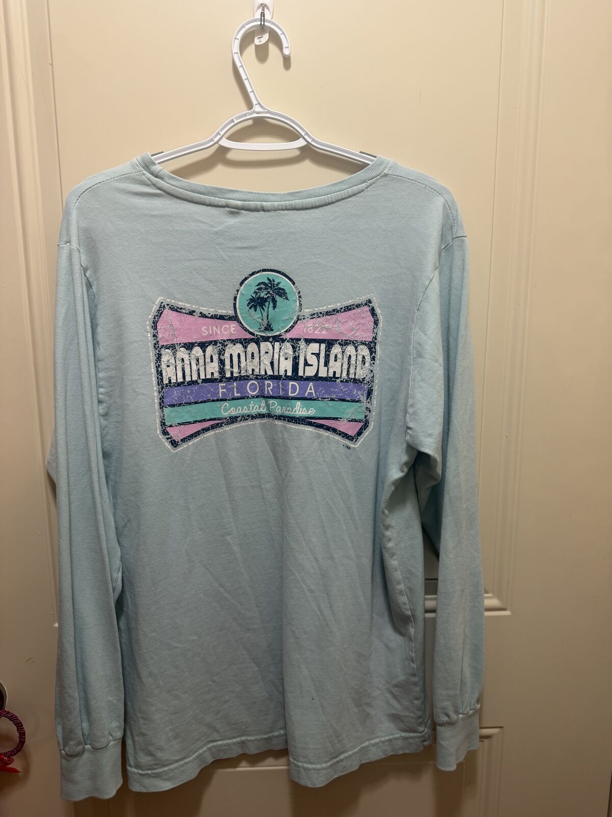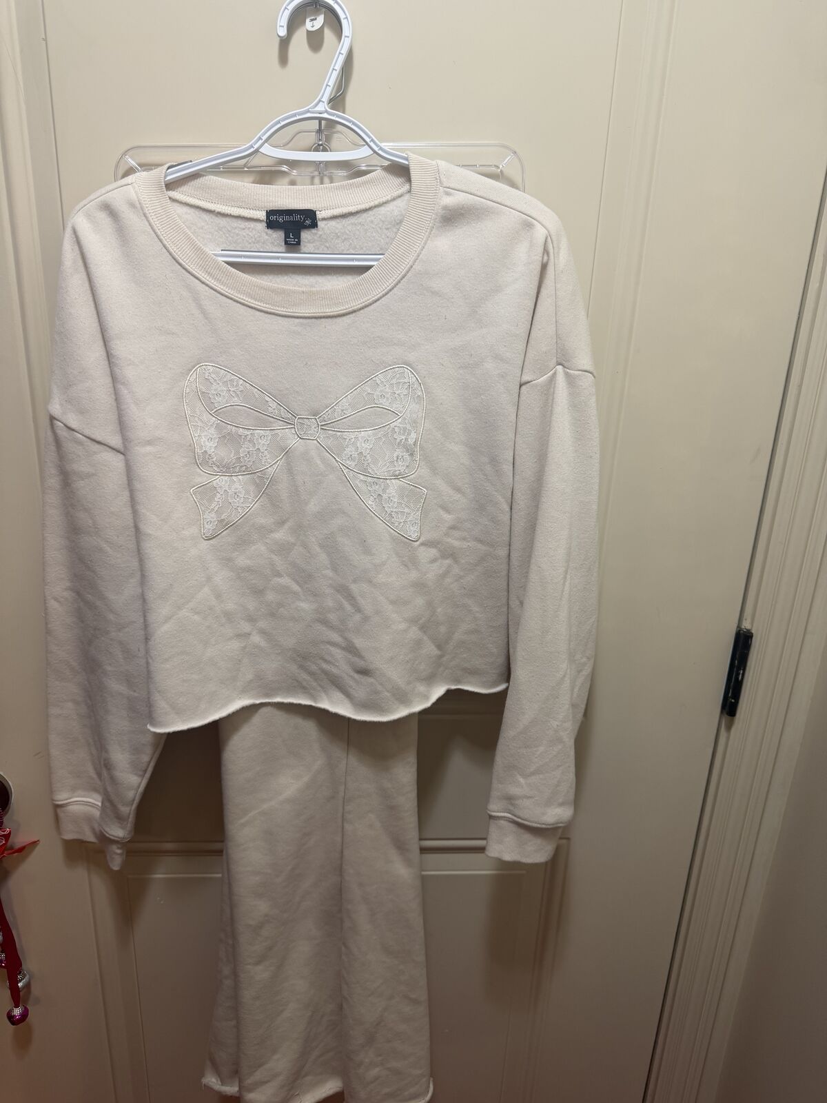 My daughter is sellling some shirts she no longer wears. Sizes range from Medium to XLarge. All clothing items come from smoke, pet free and clean home. Asking $3 for each item. The cream colored sweatsuit asking $7. If you are interested please let me now. Text is the best way of contact. NO EMAILS