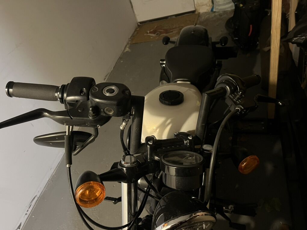 It’s never been dropped, I’m a the 3rd owner and all owners before kept it inside. Only small scratches. It comes with a sissy bar, a saddle bag, and a small rack.