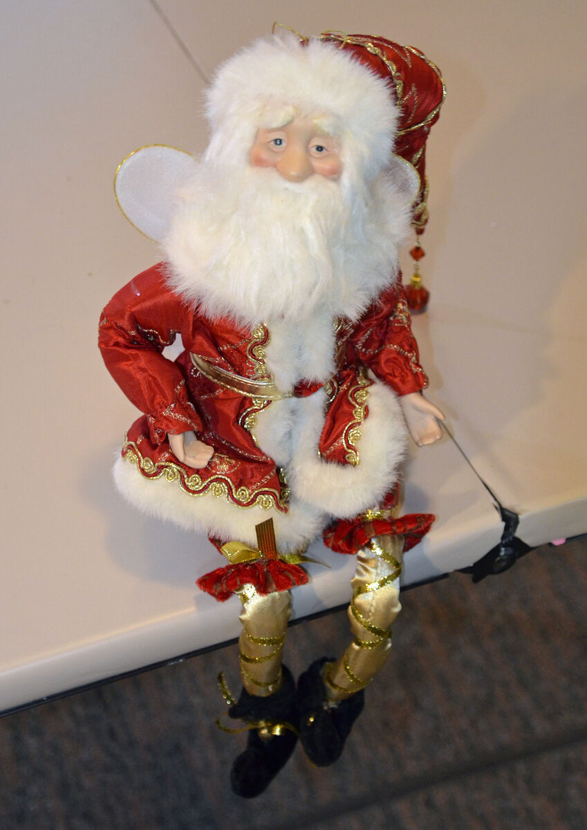PayPalSanta fairy doll, dressed in an ornate red outfit with gold embroidery, faux fur trim, and a tall curled hat.