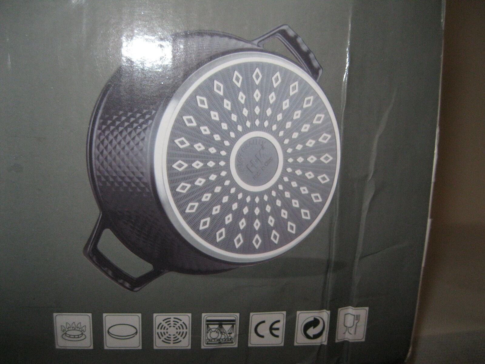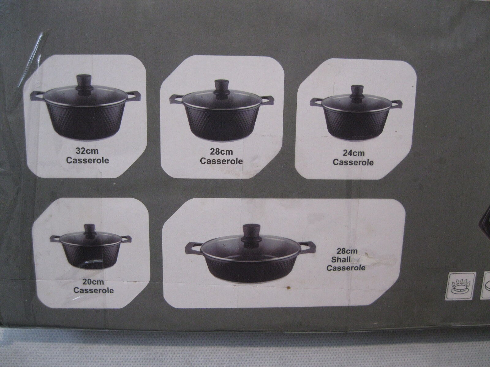 10 Piece Granite Cookware Set Black Pots Casserole. New, in open distressed box.