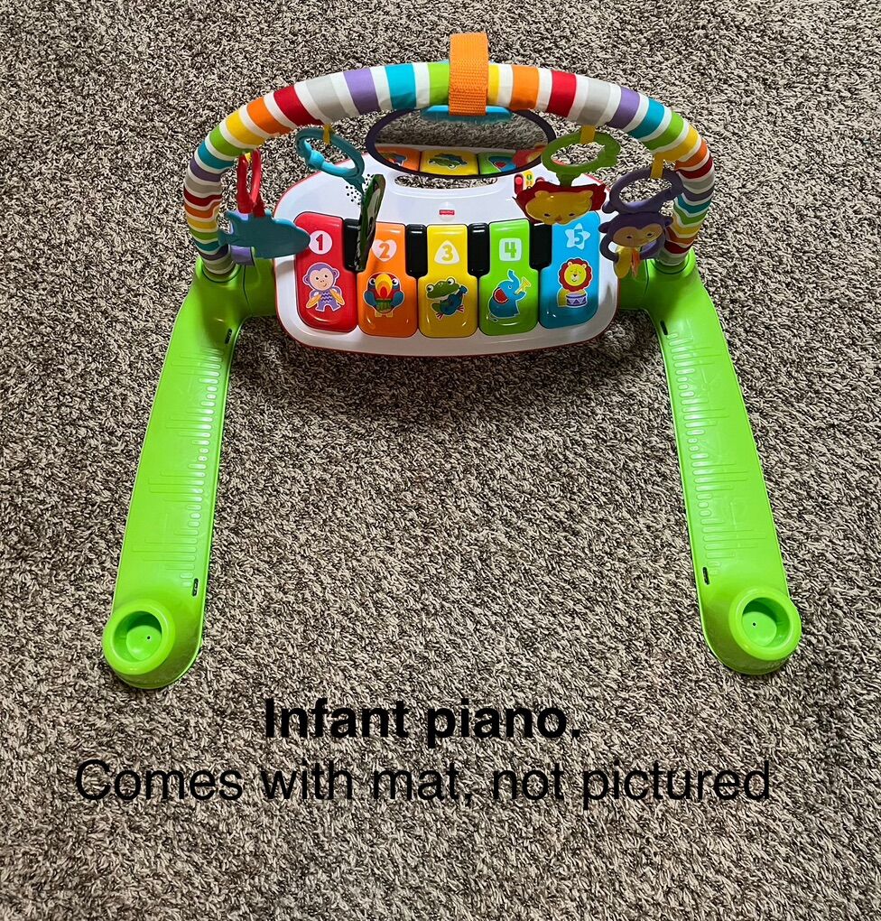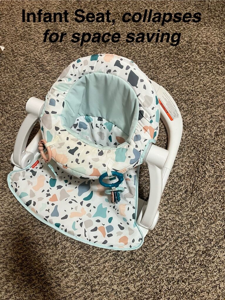 ZellePregnancy pillow $10 Infant play seat $10 Boppy pillow $10 Play piano $20 Baby/infant bath tub $10 Bath tub infant seat $10 Dr Browns bottle sterilizer $20 Bath tub lounger $10 Snuggle Me Organic $20 Montessori play gym $10