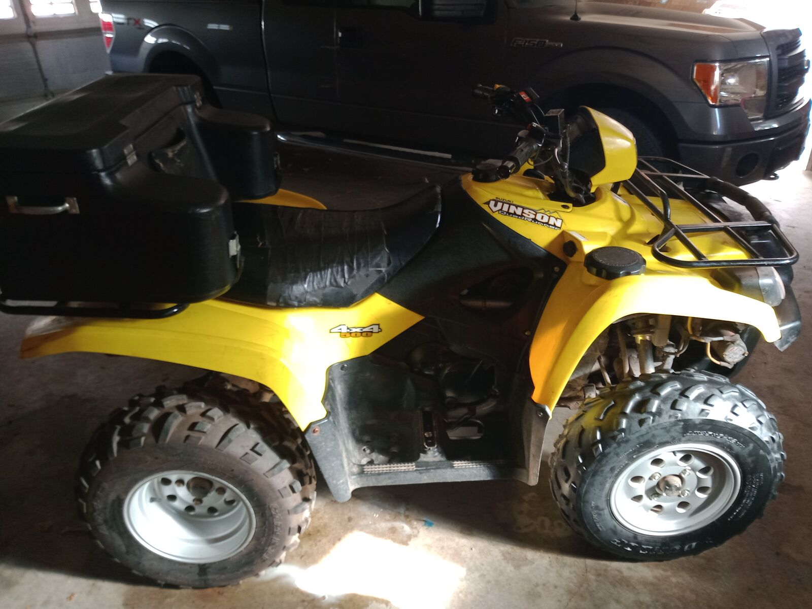 Suzuki 500 ATV 2002 with winch and snow plow, 1940 miles, new spark plugs,oil filter and, oil change, carburetor tune up, starts up easy and runs great. Has been a great reliable vehicle