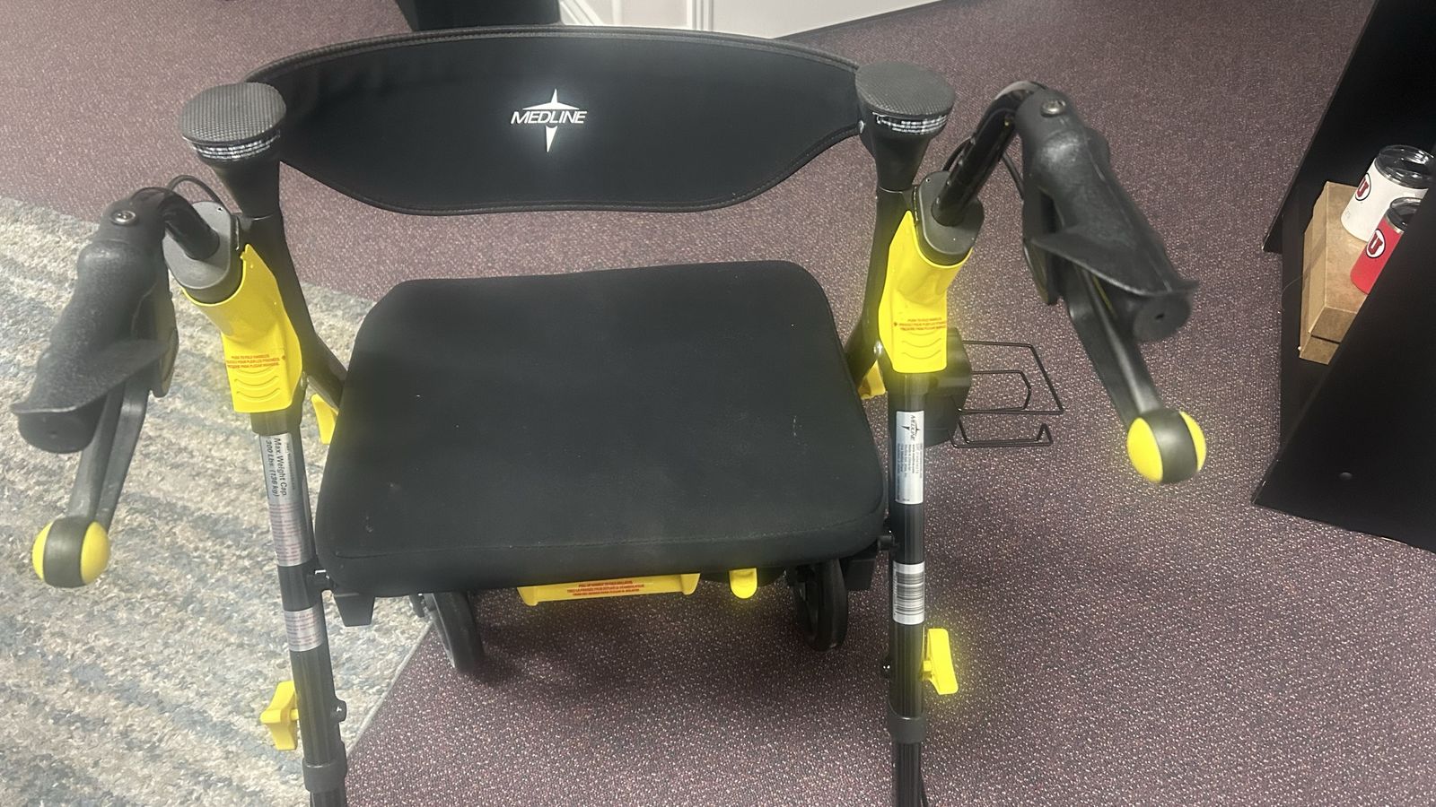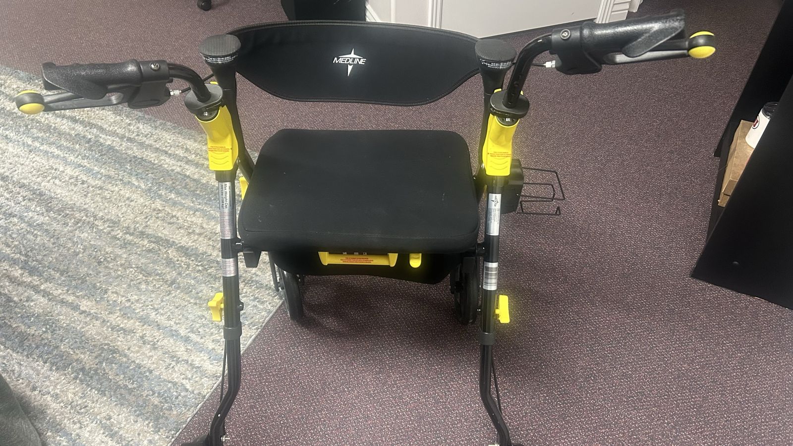 Like new walker with seat and cup holder. Weight limit 300lbs