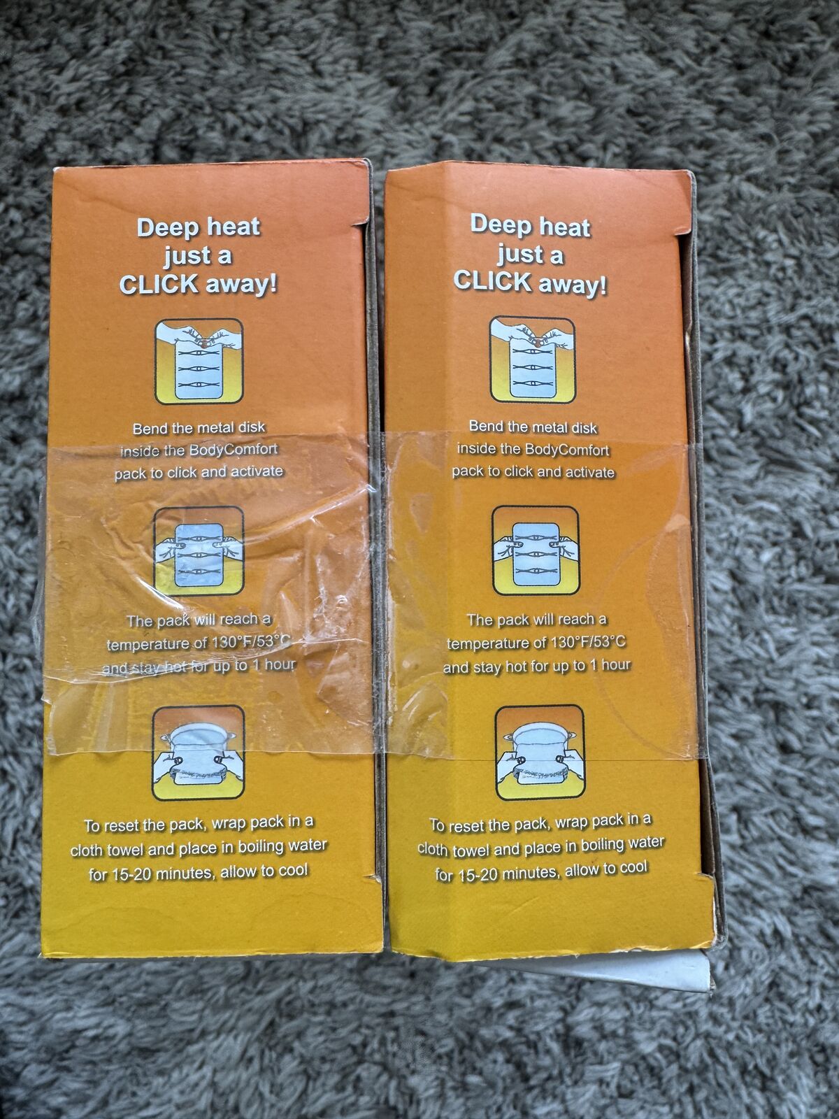 Bend the metal disk inside the BodyComfort pack to click and activate.