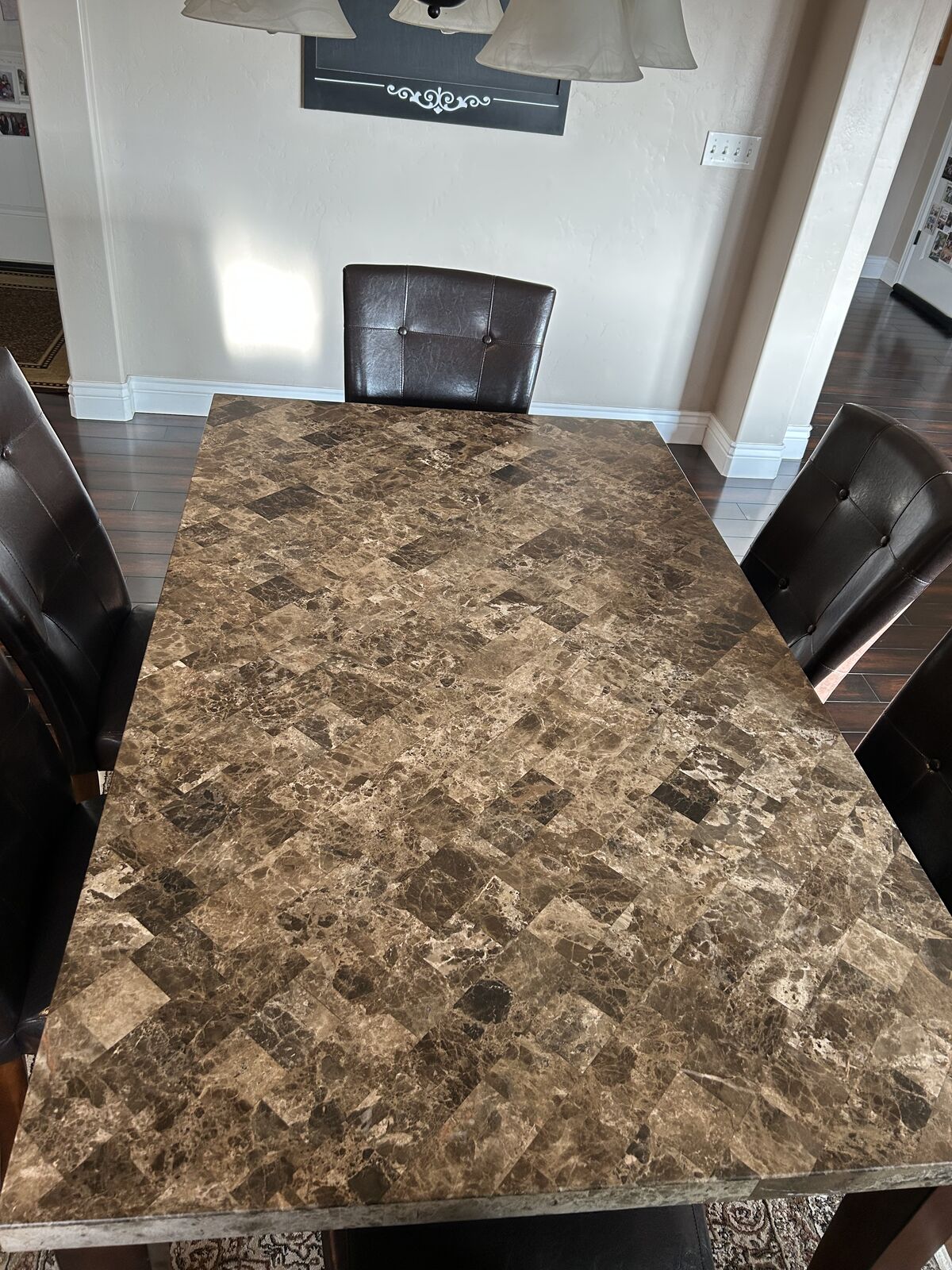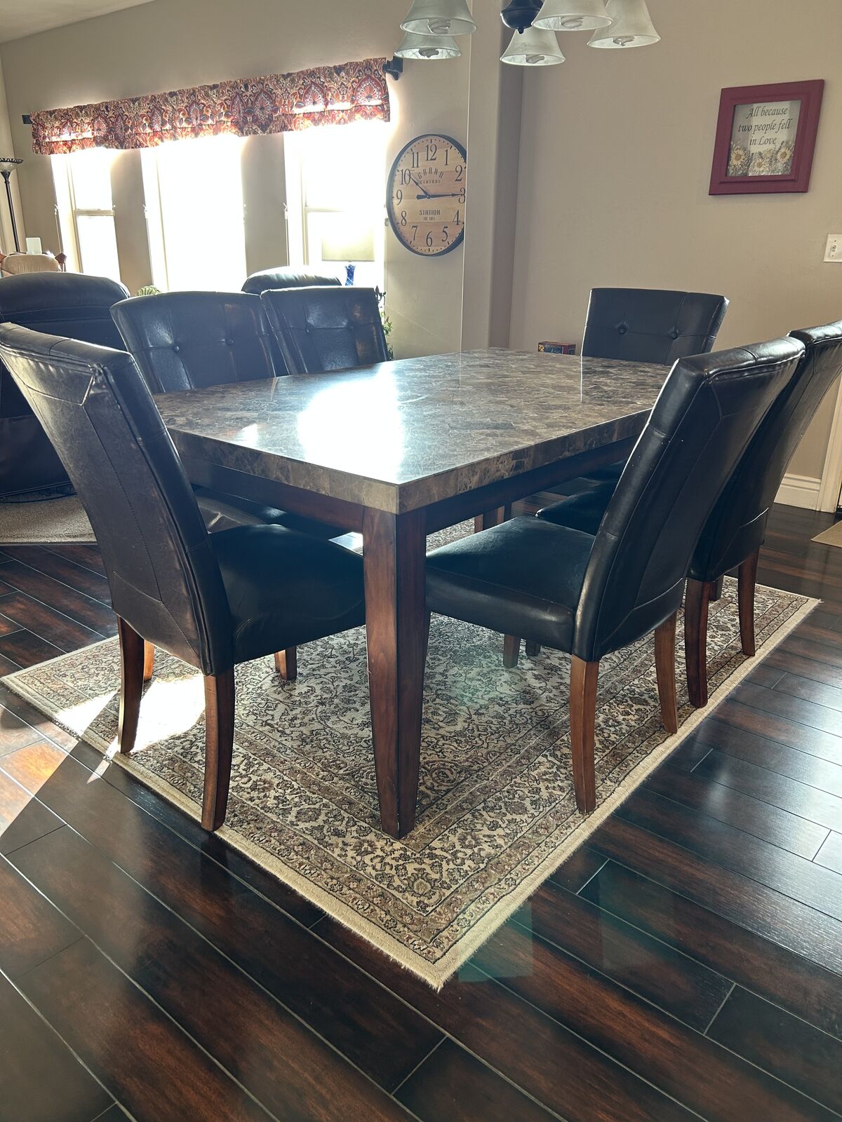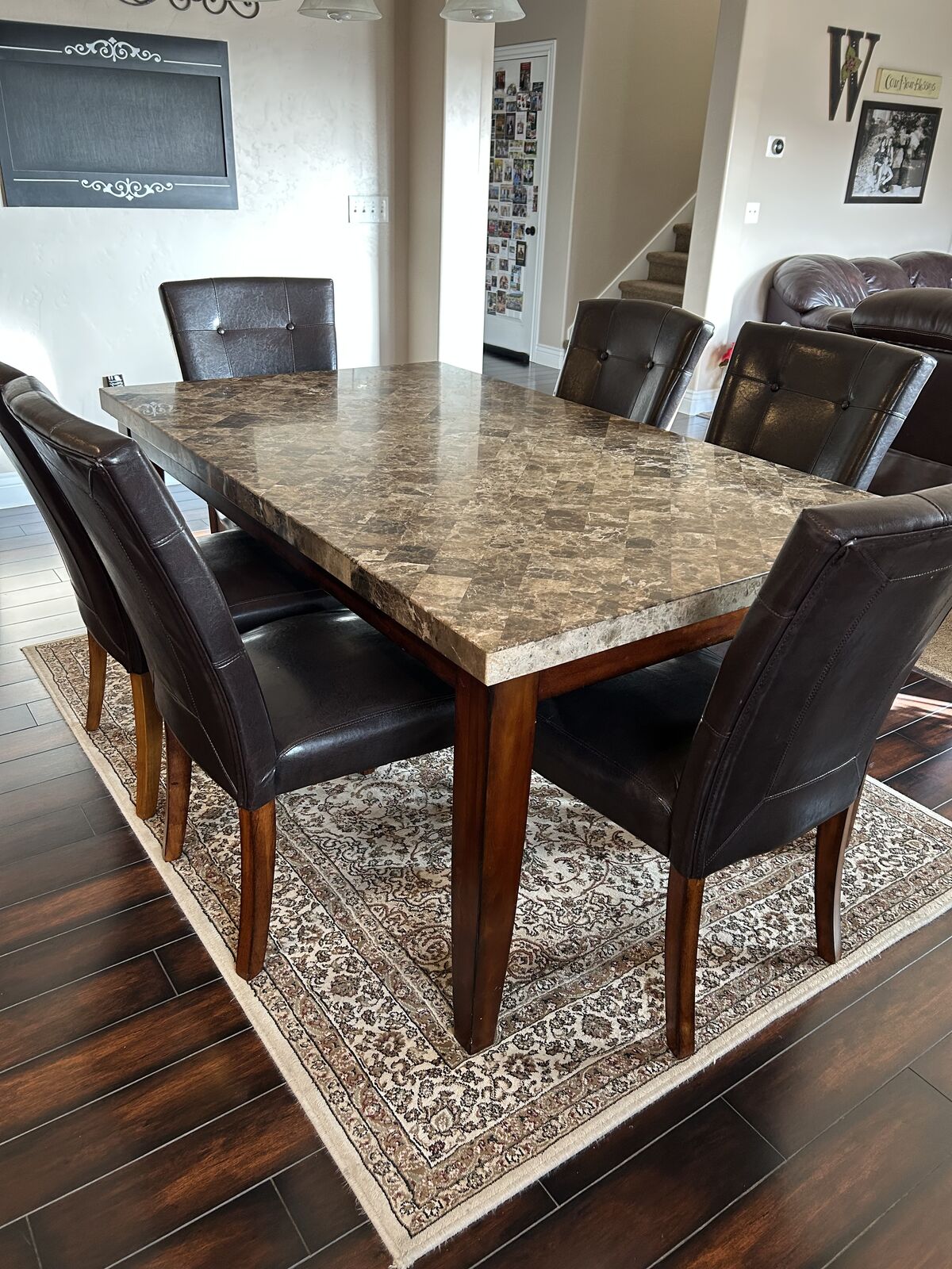 VenmoSOLD Beautiful dark wood and granite dining table in great condition. 70 inches long by 42 wide. solid and VERY heavy. Purchased for RC Willey for $3000. Comes with 7 chairs. Willing to sell separately. MAKE ME AN OFFER. Need gone this weekend.