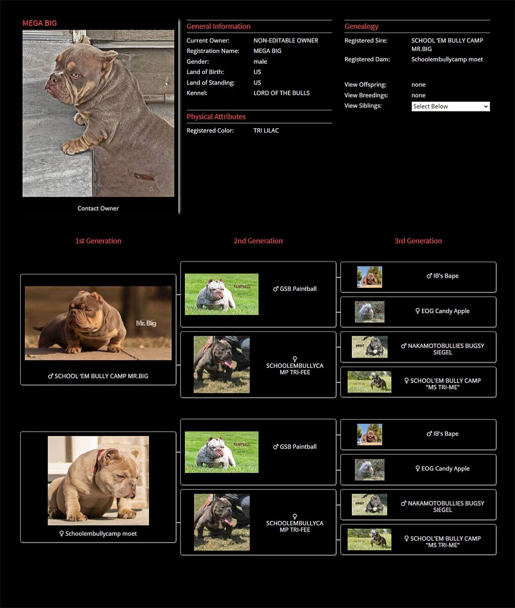 I have Mr. Big grandson available. He is short and thick. His temperment is very chill. Kids and other dogs he get along with. Pet price $1500 with a stud credit. I do stud him out too! $700 stud fee. He can produce any colors and thick puppies. He is almost two years old and proven! I was my keeper but I need to let him go to get the basement done.