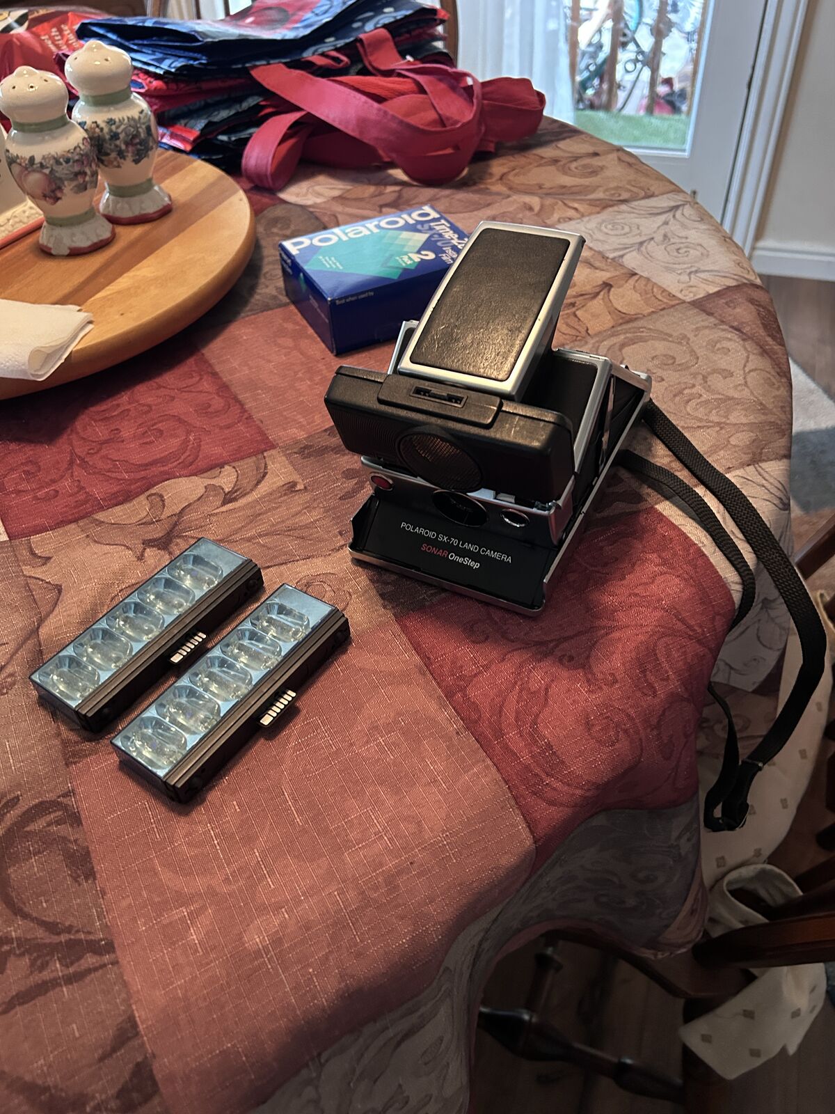 SX-70 Polaroid Land camera. In good condition. Comes with carry case, 2 flash bars($50 value) old film and paper work on how to use it. Has been sitting a while but was working fine. Film, camera & flash bars all fit in carry case. Purchased in 1980. Make offer.