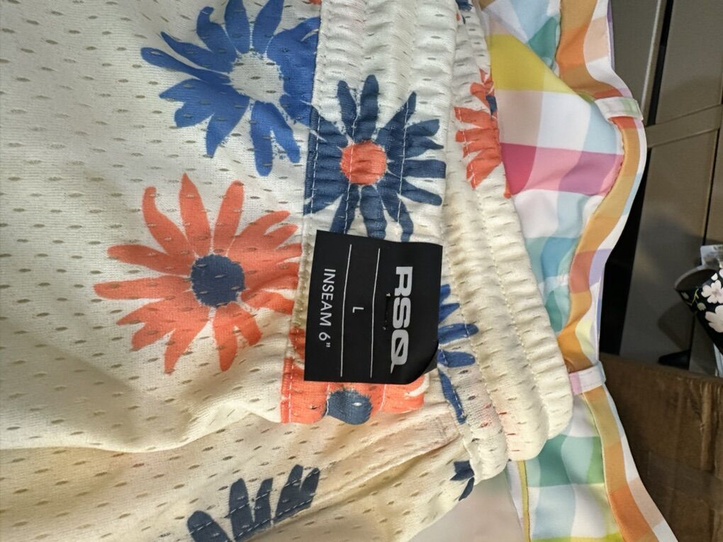 VenmoHere’s a fun pair of shorts by RSQ. Size large. I initially ordered a size too big and never returned them. They are mesh, with a drawstring waistband, and 6” inseam. Comfy for everyday wear. I wear the pair I have all of the time and love them. I accept cash or Venmo upon pick up. I live in SLC.