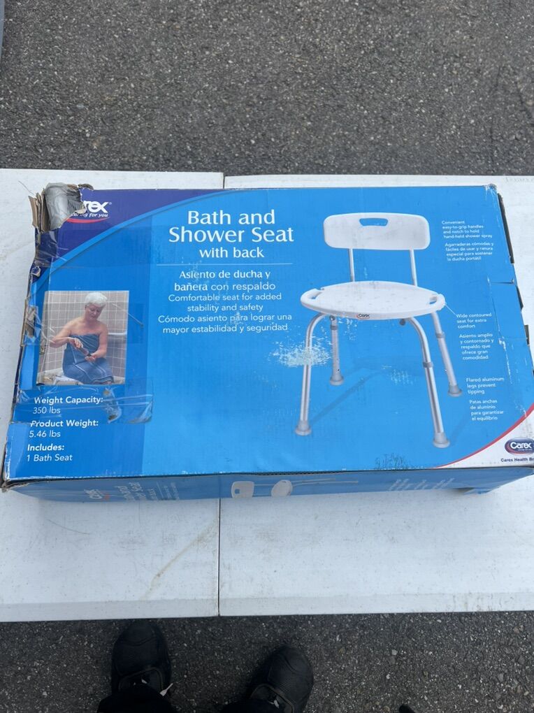 GooglePayCarex Bath and Shower Chair with Back, Adjustable Legs, Handle Grips in White