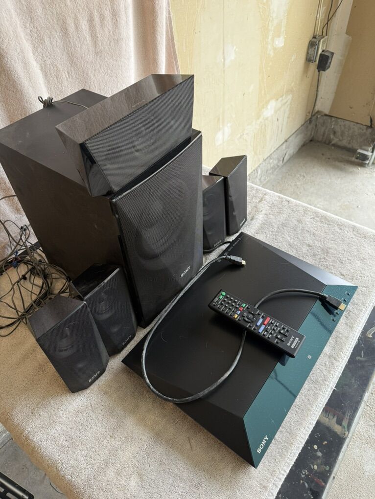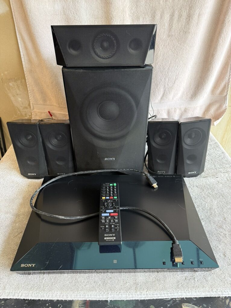 Sony DVD & 6 speaker surround sound system with HDMI cable included.