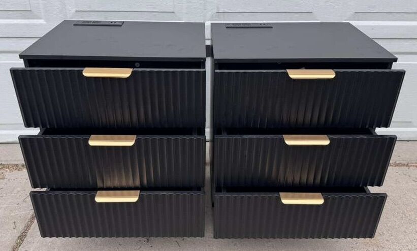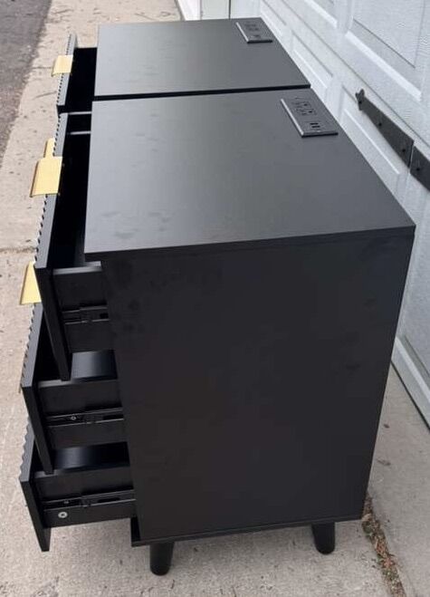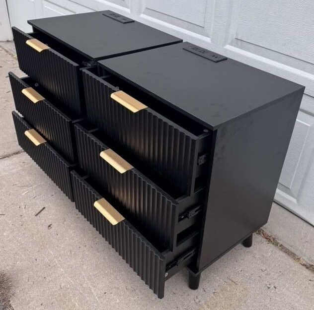 VenmoBrand new! Drawers work great! The fingerprints are from putting them together and we forgot to wipe them before we took pics. So don’t worry about those! The power strip is so convenient! Willing to deliver for $50.