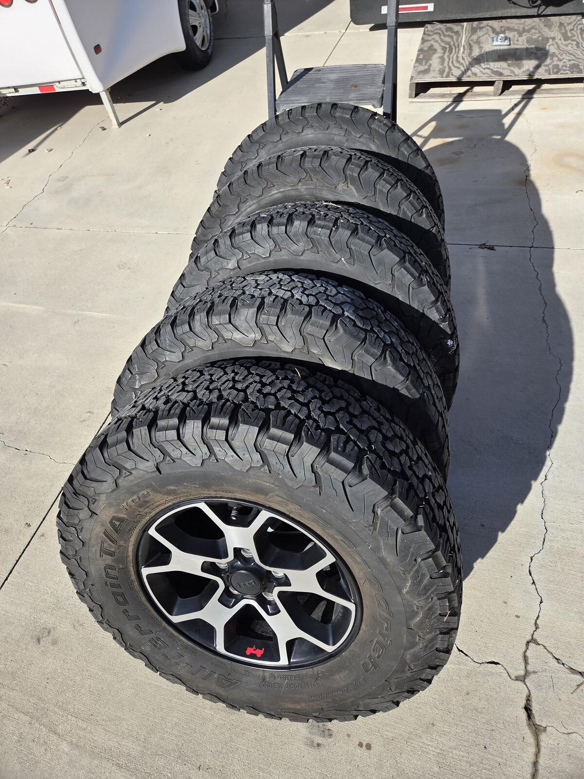 Venmo5-LT285/70R17 BFG KO2 tires on Jeep Rubicon rims with TPMS. Bolt pattern is 5 x 127. Rims and tires in good condition. Lots of mileage left in the tires. Take offs from a 2020 JLU, Wrangler Unlimited Rubicon.