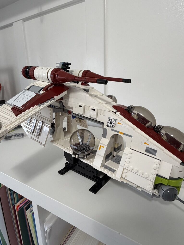Just cleaning out and making some room in the cabinets.. Today I am selling my 75021 Republic Gunship. The ship is like 99% complete.. its missing the mini figs (I have 2 super battle droids) and missing like (10) 1x1 dark grey (clear) squares. no instructions or box. I've priced it accordingly. This set is a 1,175 piece Star Wars set with 7 minifigs released in 2013. It consists of a Republic Gunship with four ball gun turrets, flick missiles, top-mounted missile launchers, side and rear doors, swoop bike, and lifting handle. Original set Includes Obi-Wan Kenobi, Anakin Skywalker, Padmé Amidala, Clone Trooper Captain, Clone Trooper, and two Super Battle Droid minifigures. It is based on the film Star Wars: Episode II – Attack of the Clones. It was retired in December 2014 Message me with any questions or feel free to make me an offer. Cash, Venmo, Paypal.