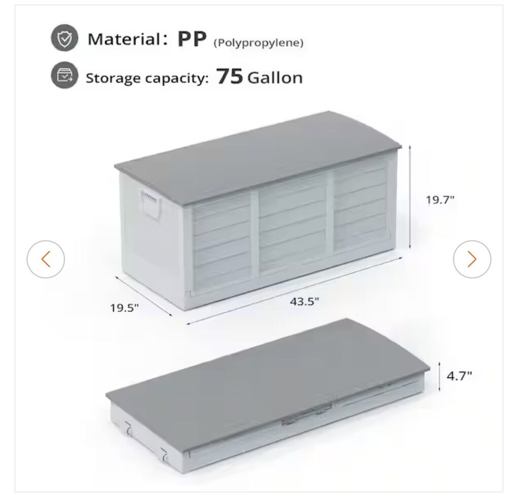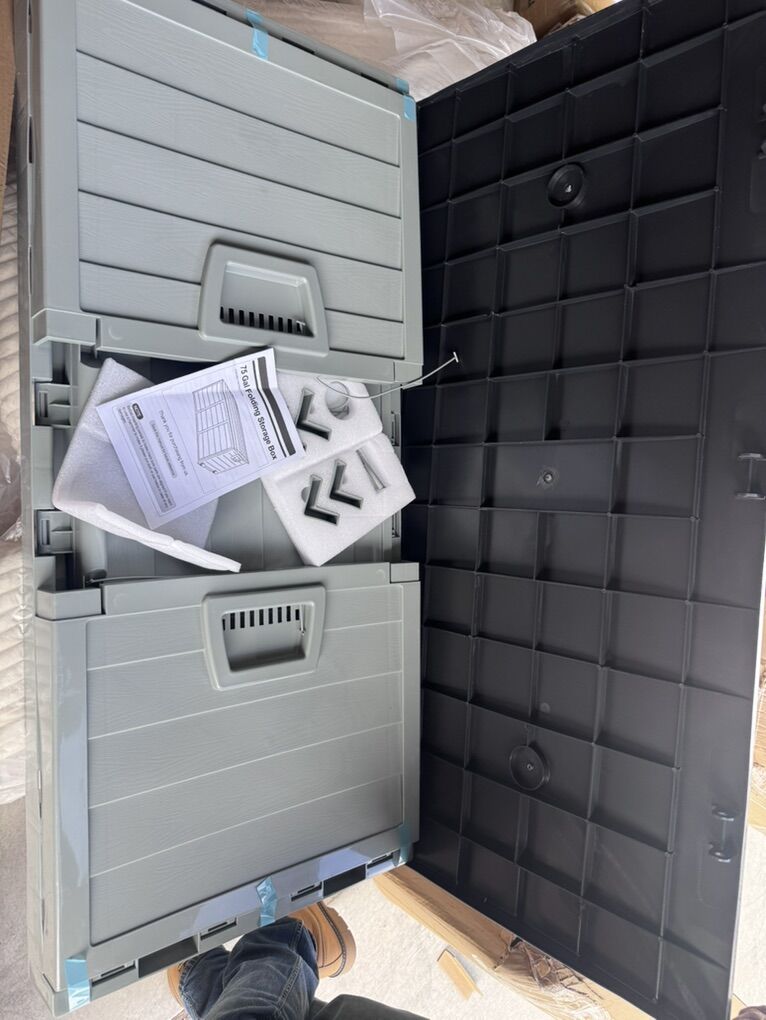 VenmoNew in box 75 Gal. Gray Foldable Plastic Storage Deck Box with Wheels for Indoor Outdoor.