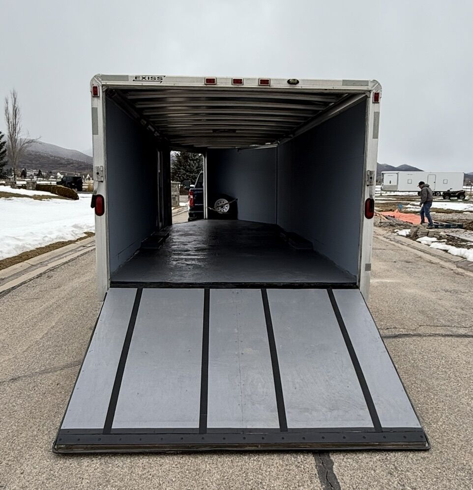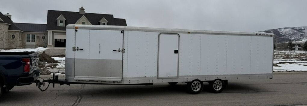 Lightly used aluminum snowmobile trailer Stored inside for majority of time New tires Updated brakes and lights Ready for immediate use 30’ length 6’4” height inside