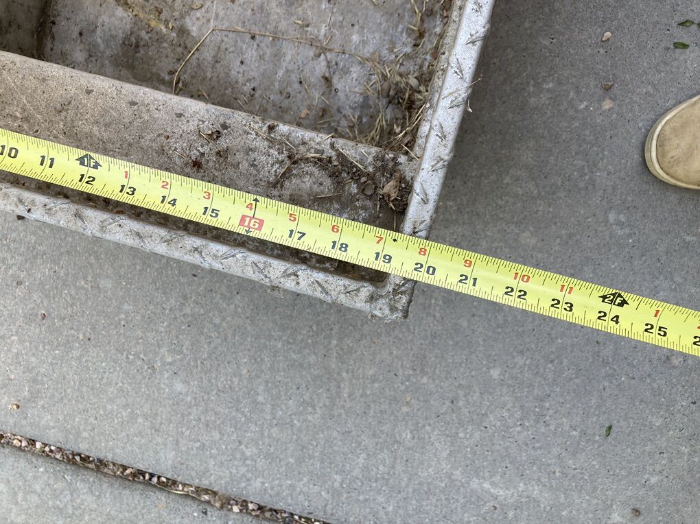 Measures 60” L x 14” D x 20” W overall. Inner portion measures about 52” L x 9” D from bottom. See photos with measurements.