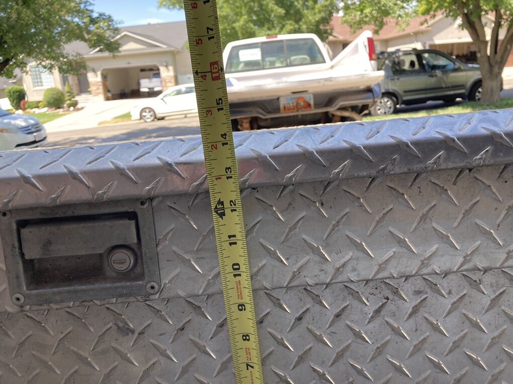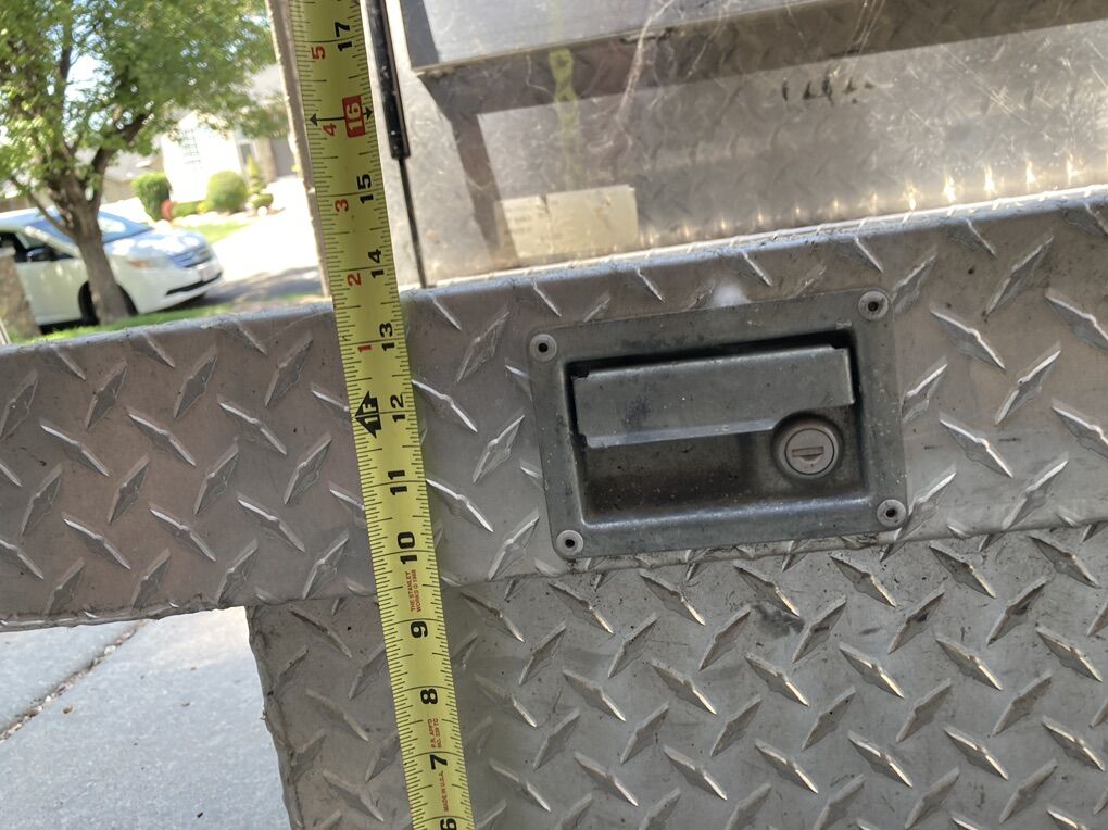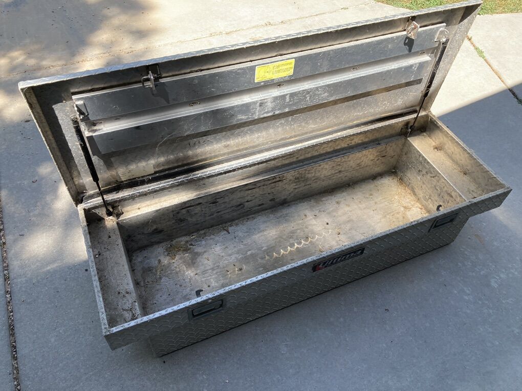 VenmoPickup truck bed toolbox made of aluminum diamond plate. Well built. Everything works, including key and lock.