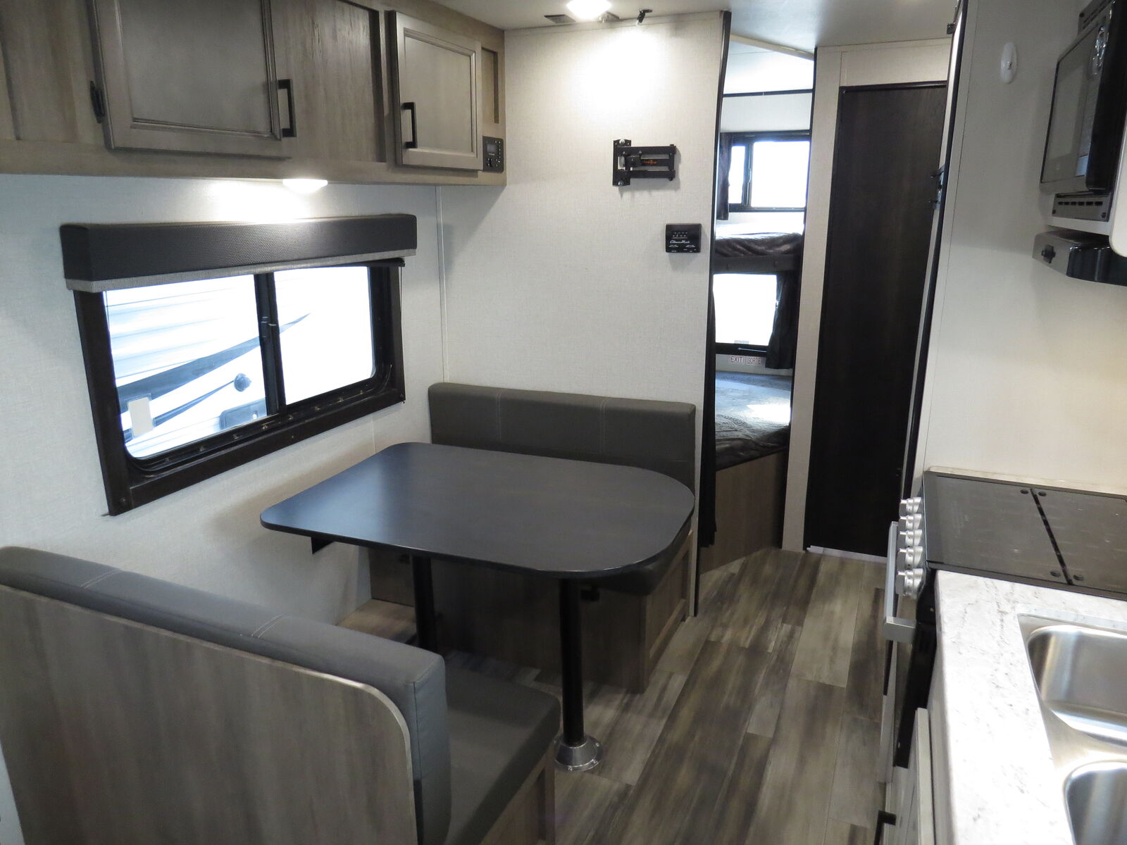2 Big Rear Bunks, Booth Dinette and couch Make down, Front Queen bed!, side Kitchen, Corner Bathroom, A/C unit and Heat. Location: 50 S Frontage Rd, Springville Dealer#832B Quality RV -Financing Available-