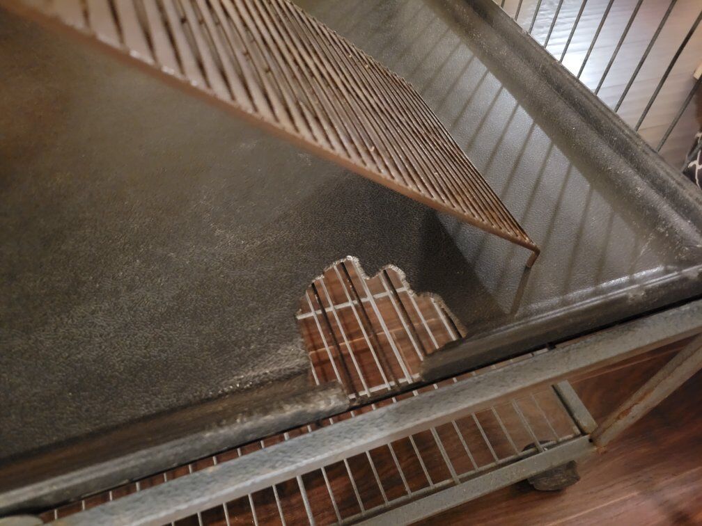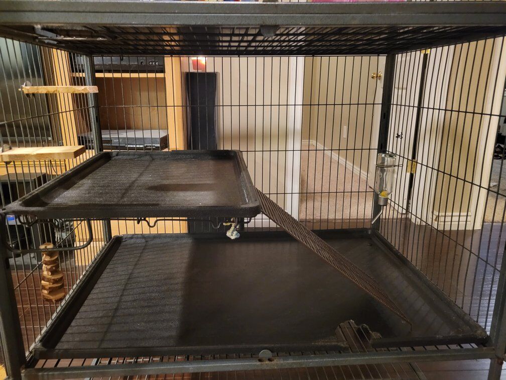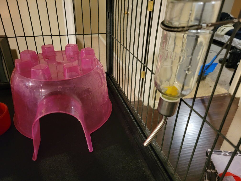 VenmoThis is a 5ft by 3ft 2ft small animal cage. can be used for Rats, Guinea Pigs, Ferrets, and many other small animals. works great, small cosmetic damage, and there is a hole on the bottom plastic panle but animals can't get out due to wire bottom. Comes with two glass water bottles, pink castle housing, ceramic dish, and blankets(if wanted)