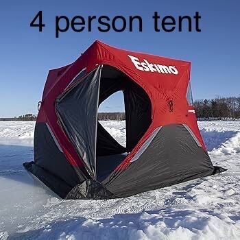 $65 - 4 man tent package. Includes the tent, a sled, two poles, two chairs, ice scoop, buddy heater (you must provide your own propane), and ice auger (either a hand auger or an auger with a drill attachment (you provide your own heavy duty drill).
