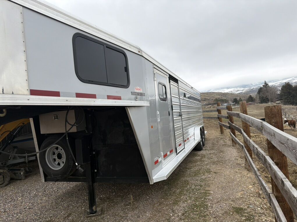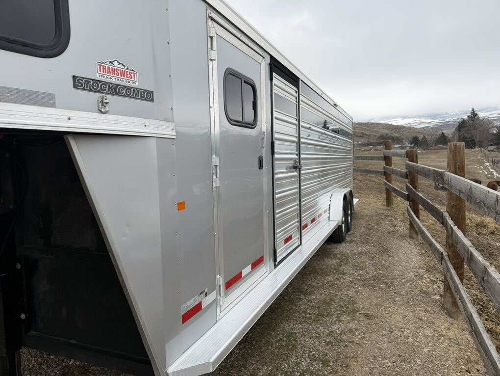 2022 stock combo with trainers track. Trailer is like brand new, has hydraulic jack. Tack room has double doors with Tons of hooks, and water holding tank. Rubber floor mats in stock area. 26’ long with a 20’ stock area. Call or txt with any questions.