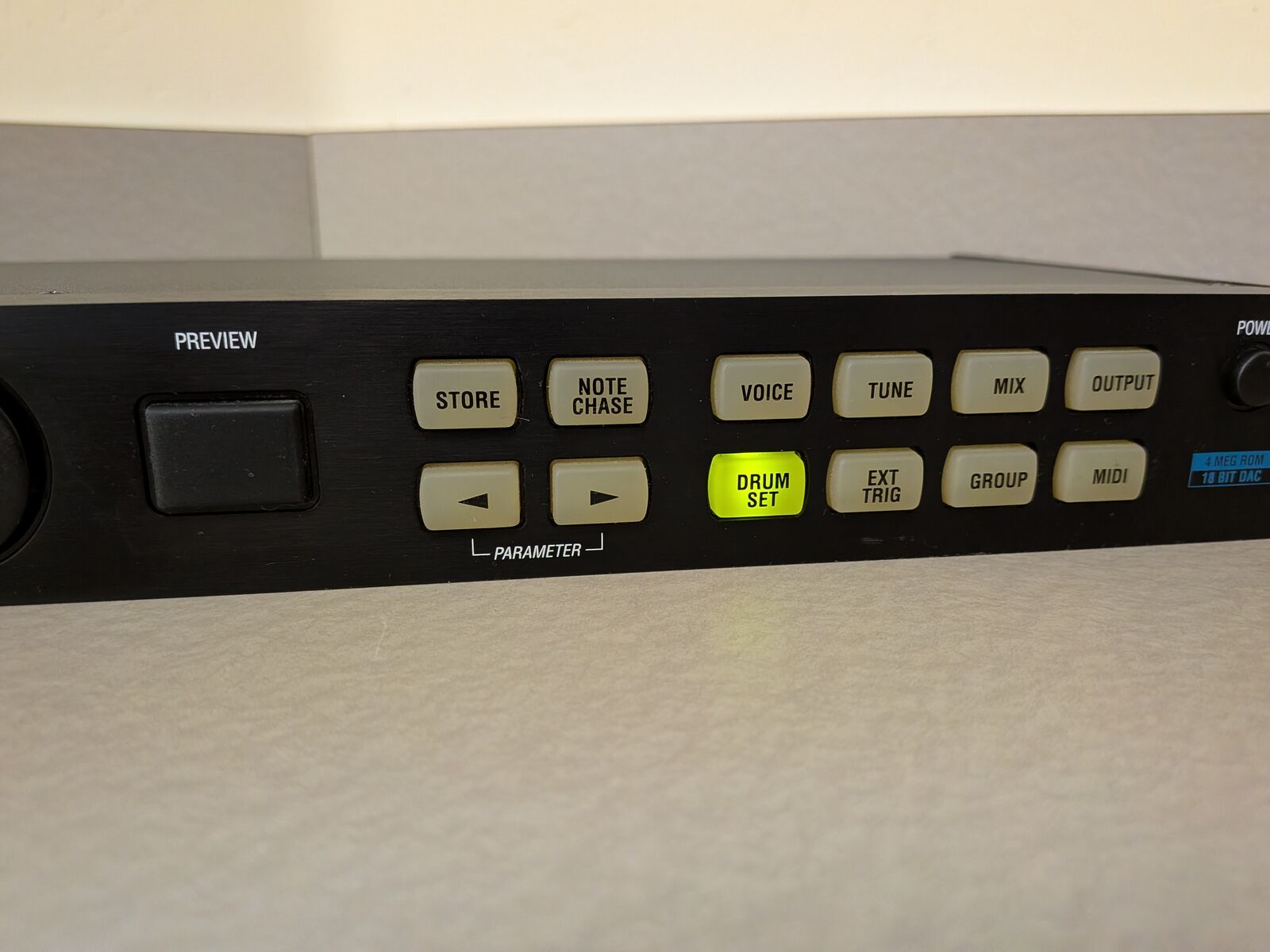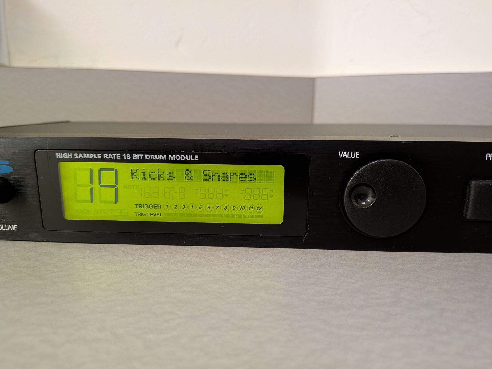 The Value Wheel is problematic and wants to jump around. Otherwise it works and sounds great! For example, you'll spin it 1,2,3,4 and then instead of going to 5 it skips back to 3. And it can go backwards and take a second to get where you want the value. If you have patience you can get it set how you need. Or if you don't want to make a ton of changes all the time it will work wonderfully for you. Stores settings just fine through unplug. Comes with just the brain and power cord. No pads or cymbals or pedals included. Bring your drum pad and some headphones and demo it when we meet.