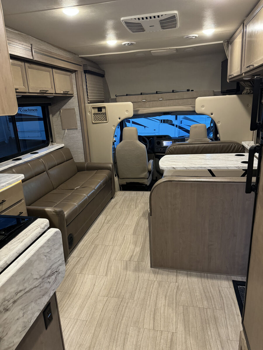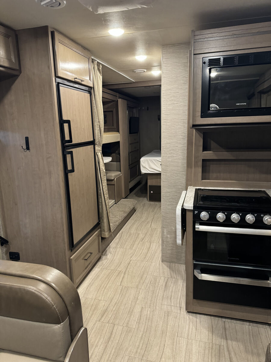 ZelleLots of space and great layout, clean and comfortable. The bunk beds can be used as twin beds, storage, or a 2nd dining table. Onboard generator for convenience and comfort while driving down the road or at camp. 2 slides to maximize space and comfort with self leveling jacks. Perfect for your next vacation or weekend getaway!