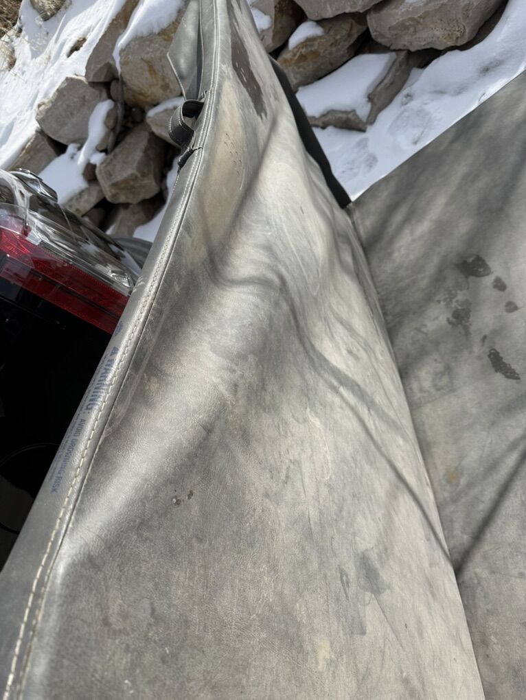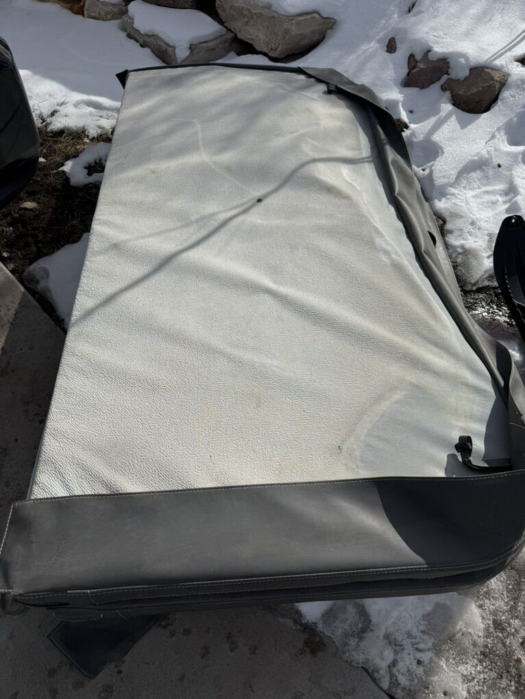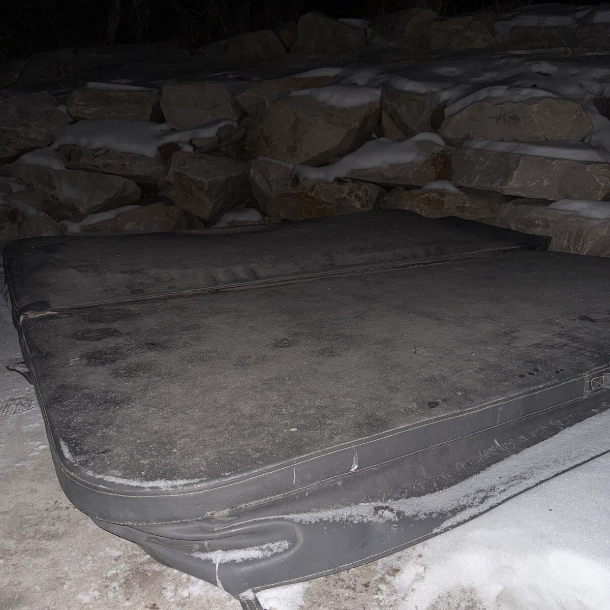 Free - grey spa cover original 2012. Somehow one side has had the material inside (styrofoam maybe?) chewed up a bit. Might be easy to repair or if you just need a cover, this one is great.