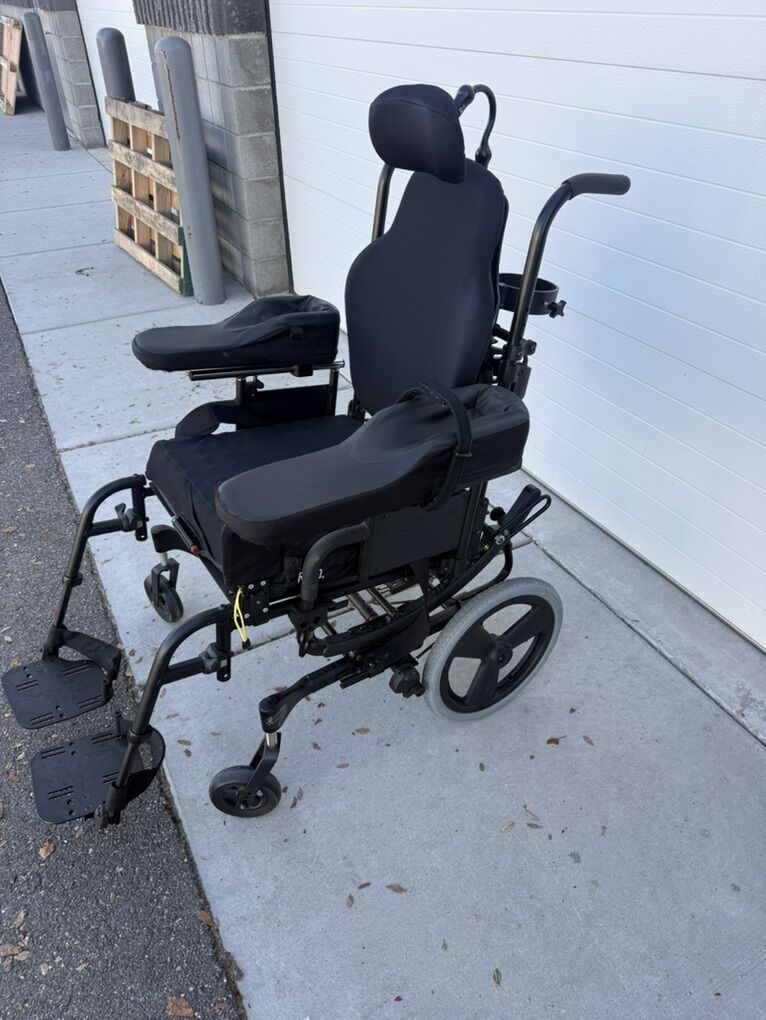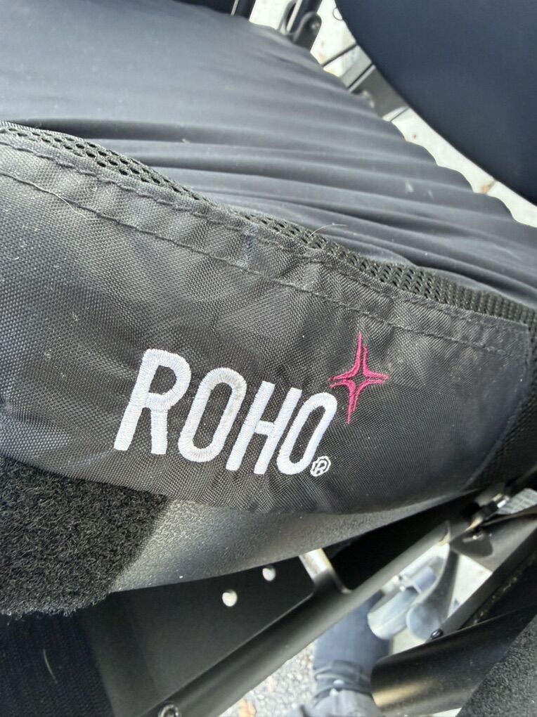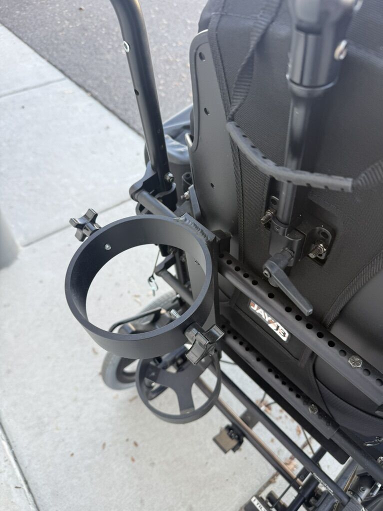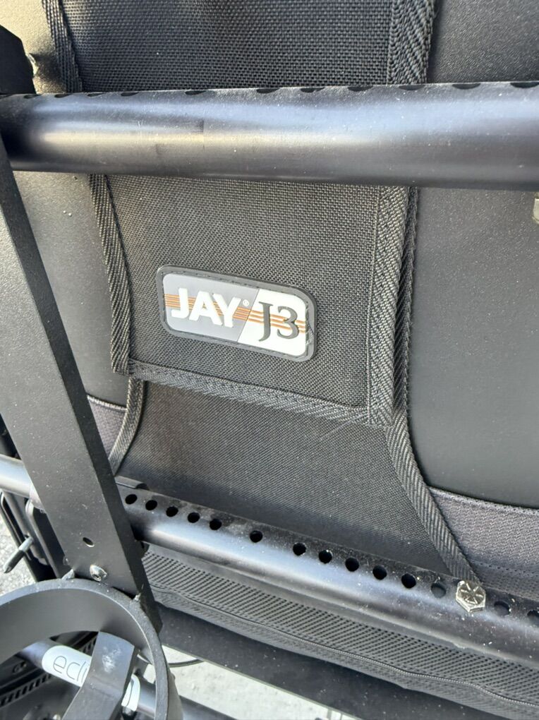 Jay J3 backrest. Jay armrests. ROHO seat cushion. Headrest. Oxygen tank holder.