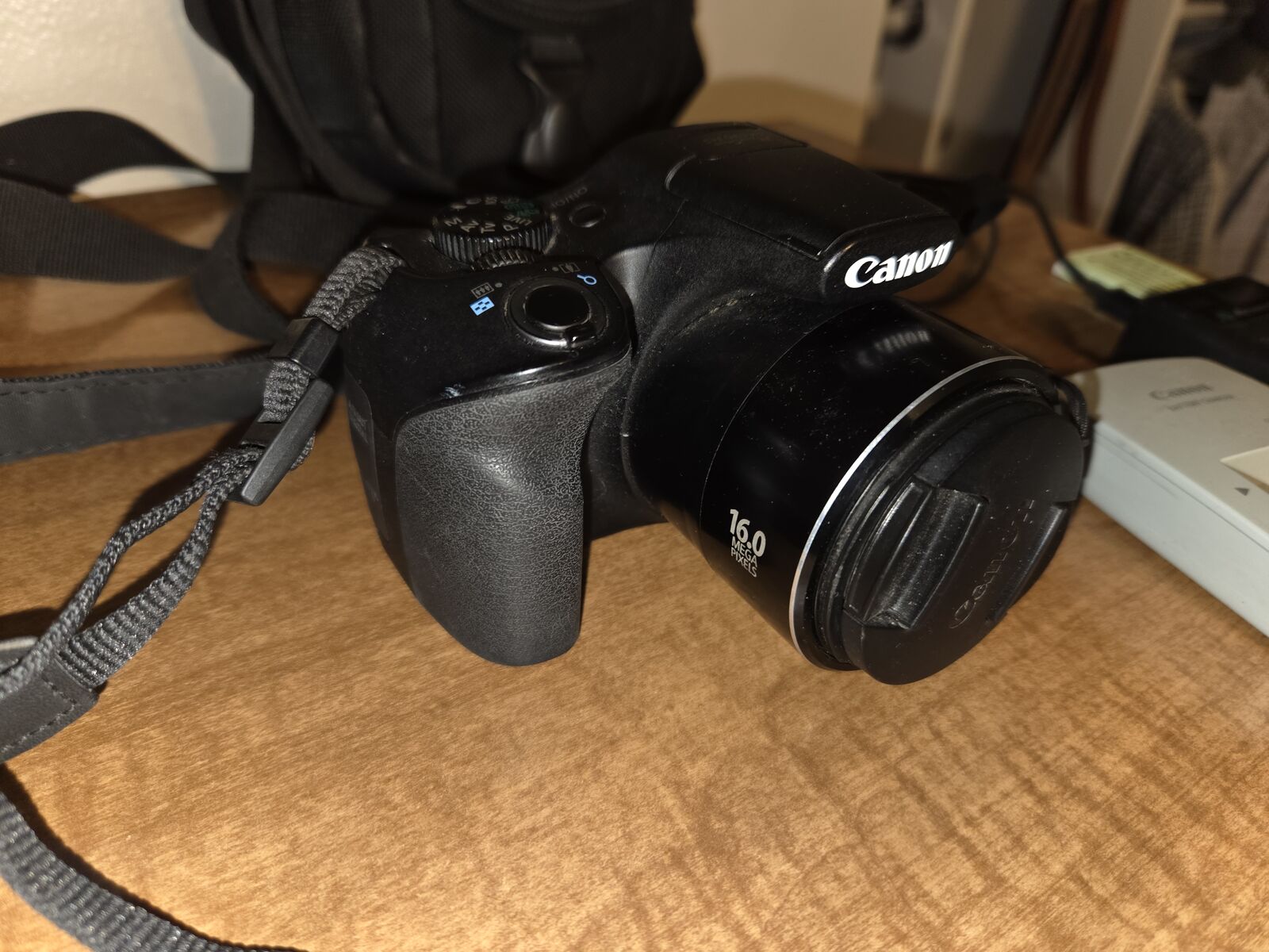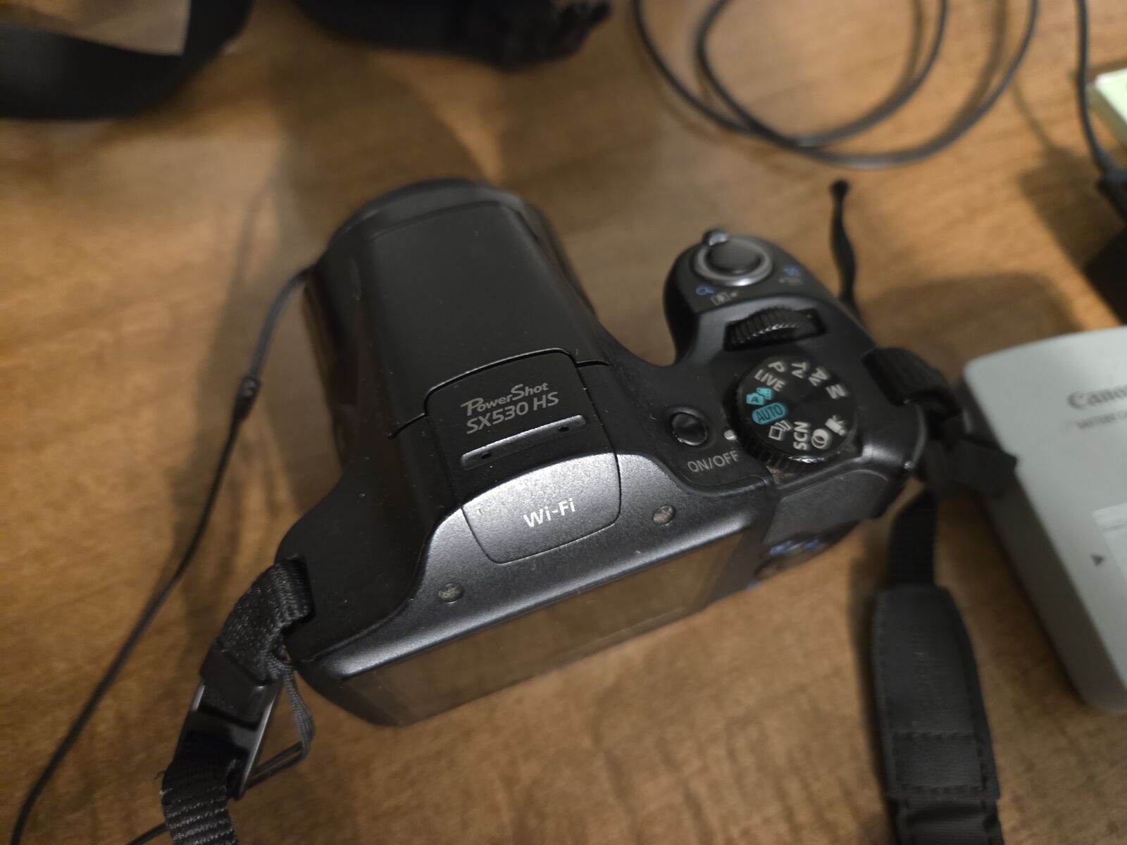VenmoCanon PowerShot SX530 HS 16.0 MP CMOS Digital Camera with 50x Optical is Zoom (24-1200mm), Built-in WiFi, 3-Inch LCD and 1080P Full HD Video (Black) Well cared for always. Glass is still perfect. Great camera to get into both photography and videography. The 50x Optical Zoom is the real selling point here. It also does Digital Zoom out to 100+. It comes with all accessories pictured including a case, 3 rechargeable batteries and battery chargers.