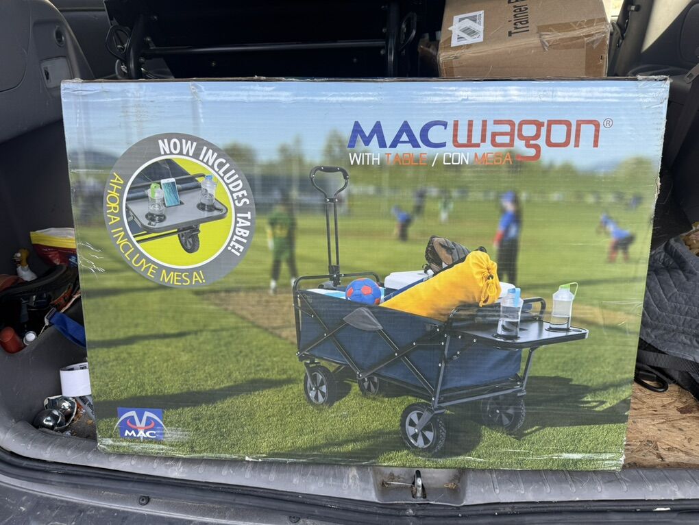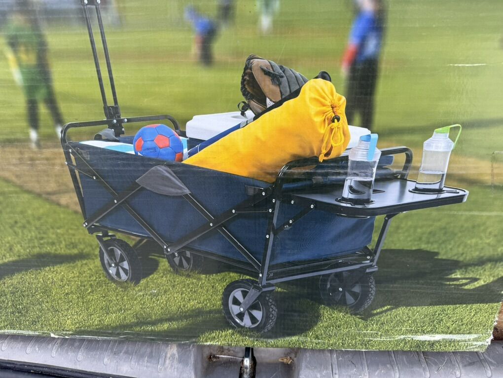 I believe the color of the wagon is blue.