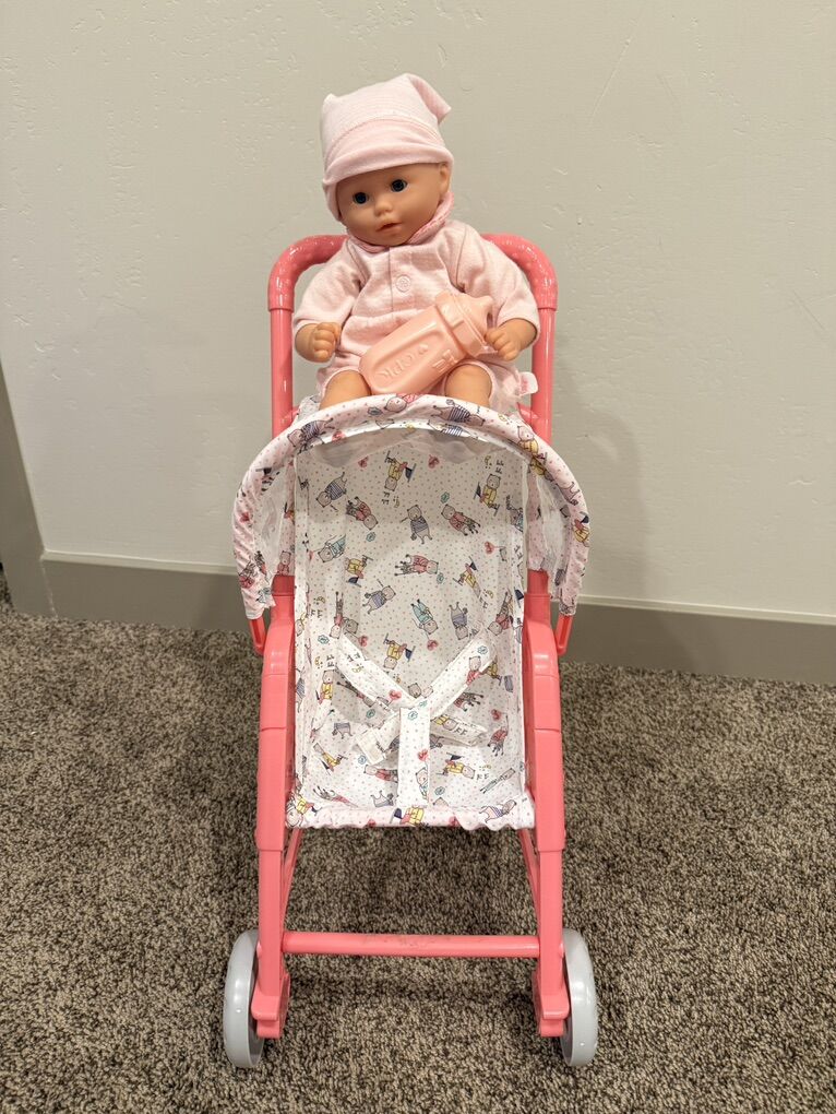 VenmoLightly used toy baby with stroller and baby bottle included.