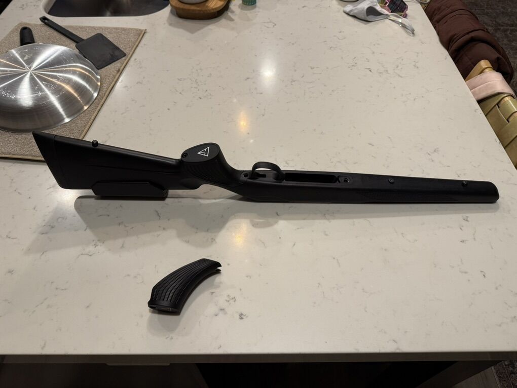VenmoTook this off my Tikka T3x Long Action. Added a Victor adjustable cheek riser and Tikka vertical grip. Shoots great and I’ve loved the setup but decided to finally get a chassis.