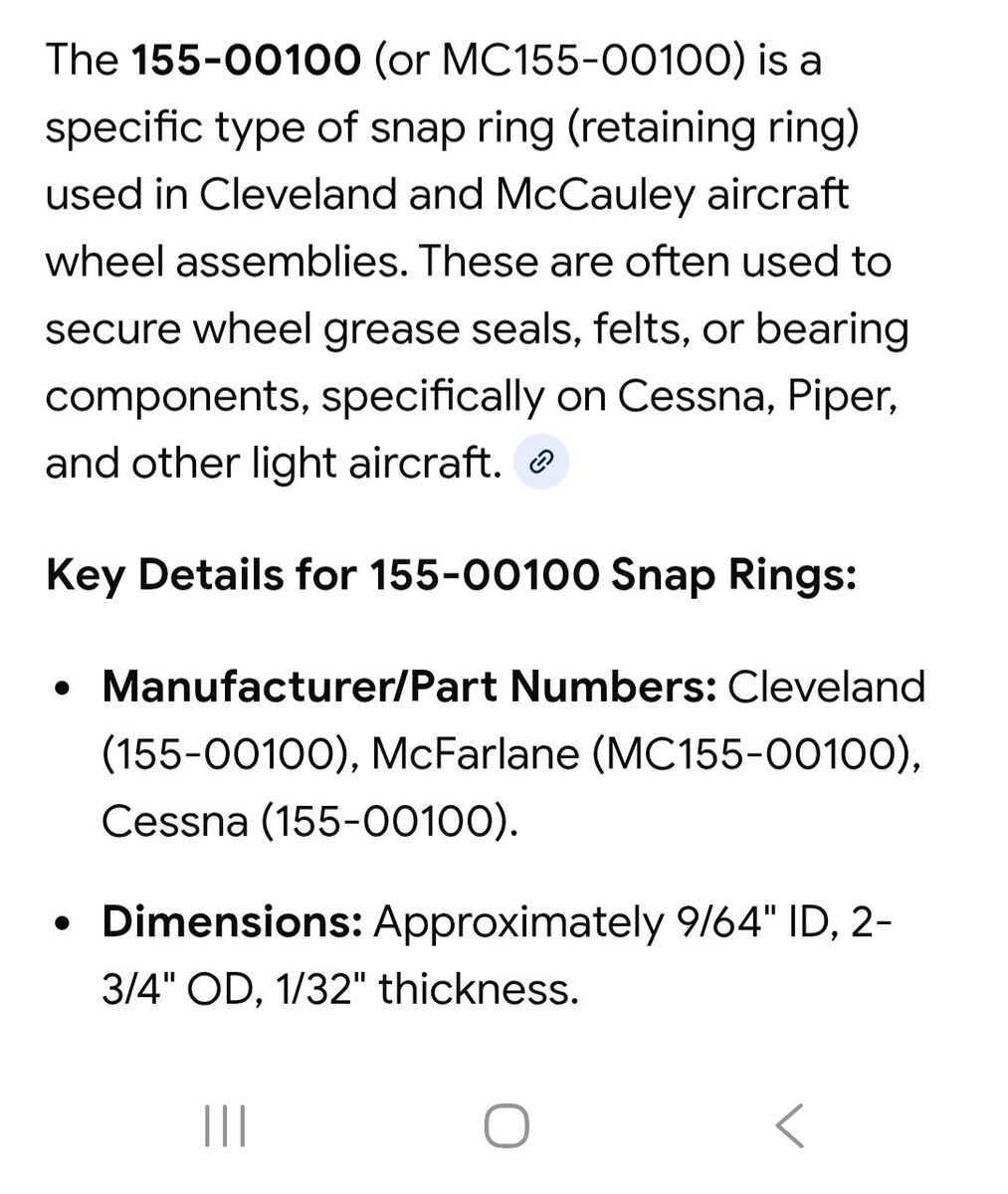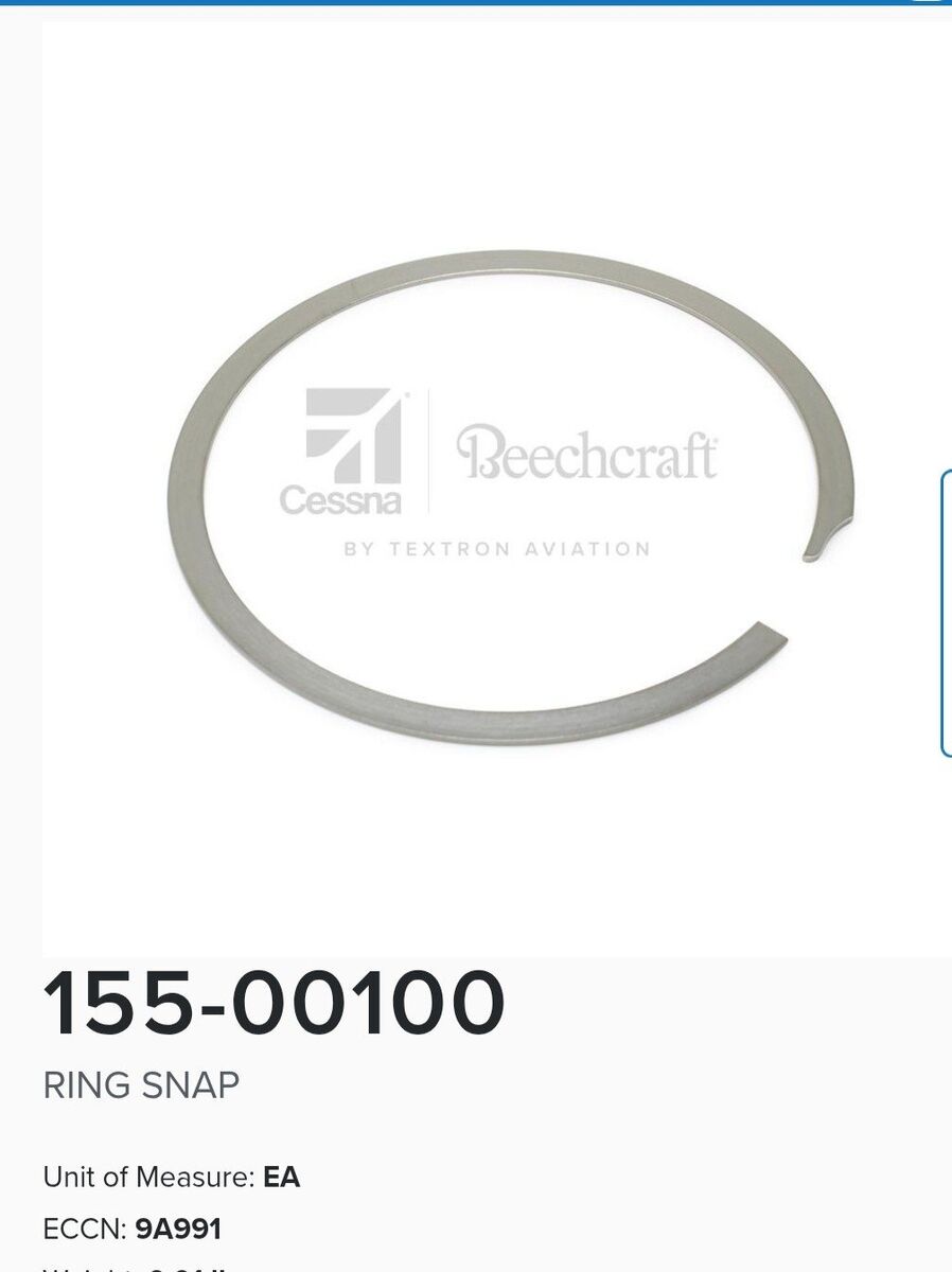 I have 23 part #155-00100 Aviation snap rings ECCN 9A991 fit different planes please make sure this part works for you. i have two packs of 10 rings will take 100.00 per pack of 10 or all 23 rings for 200.00 cash