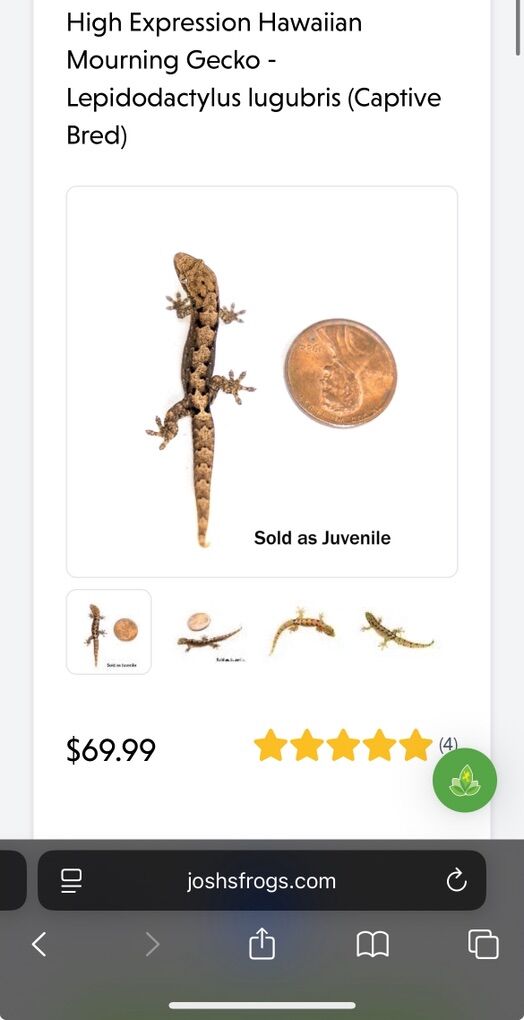 ApplePayI have three baby high expression Hawaiian mourning geckos available now! They are healthy and bold! Would prefer to sell the trio but can sell as a couple. These are also available for 70 plus shipping so around 120 a gecko at Josh’s frogs.
