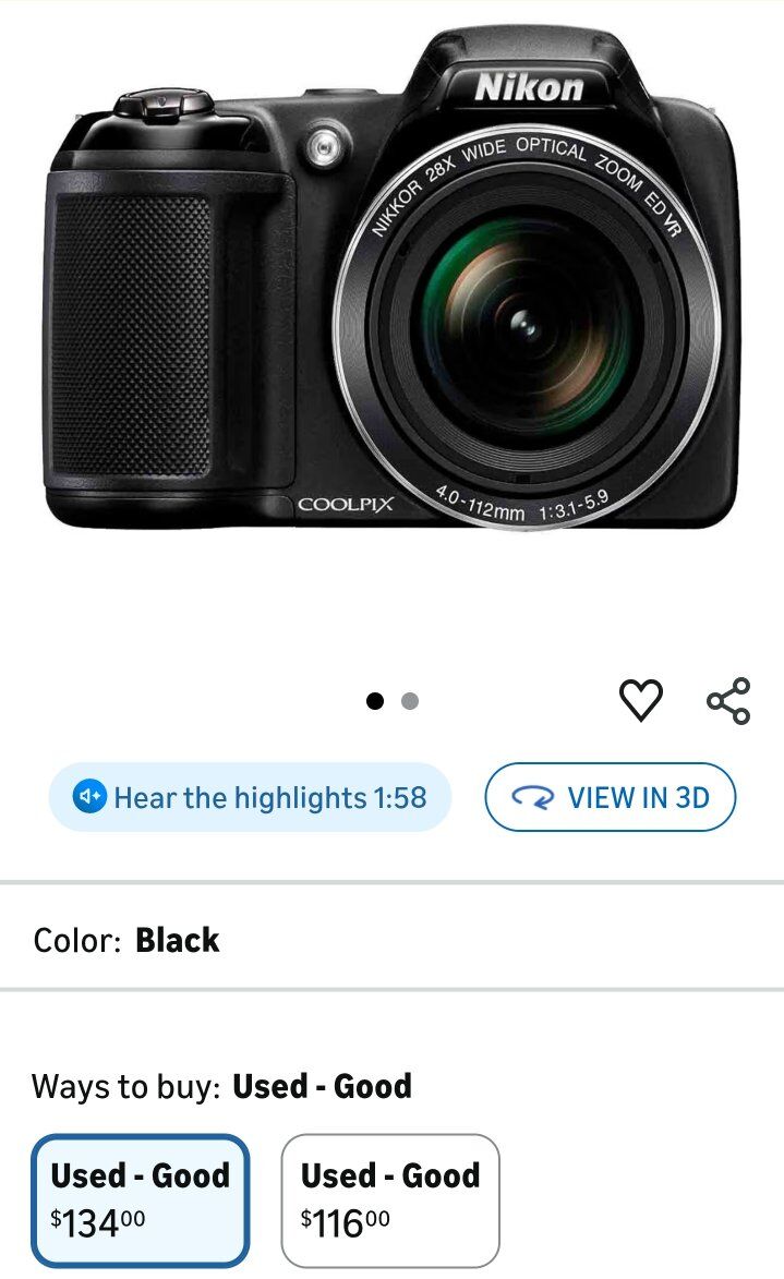 Pre-Pre-Owned Nikon COOLPIX L340 Digital Camera (Black) Works excellent.