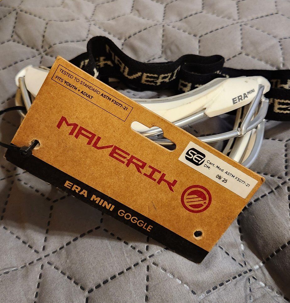 lacrosse goggles fit youth +adult adult white with black strap they are ERA Mini Goggles called Maverick 40.00 cash