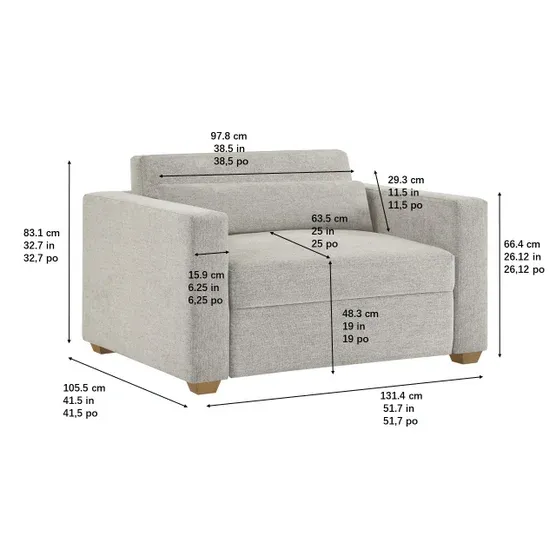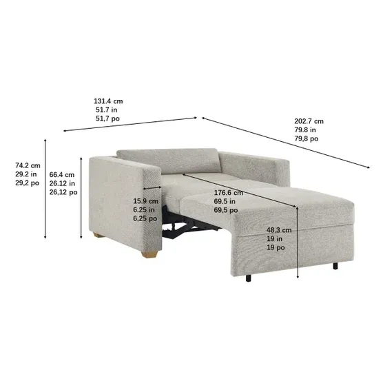 • Converts into a Twin-size sleeper bed • Great for guests, small spaces, apartments & Airbnb • Comfortable and supportive cushions • Modern fabric style — clean look • Easy to use pull-out sleeper function