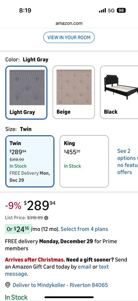 VenmoHeadboard and frame is in great condition. Missing wooden slats for the middle. Retails on Amazon for $250