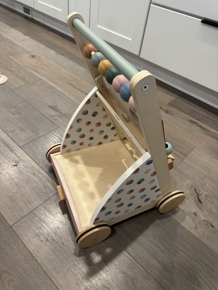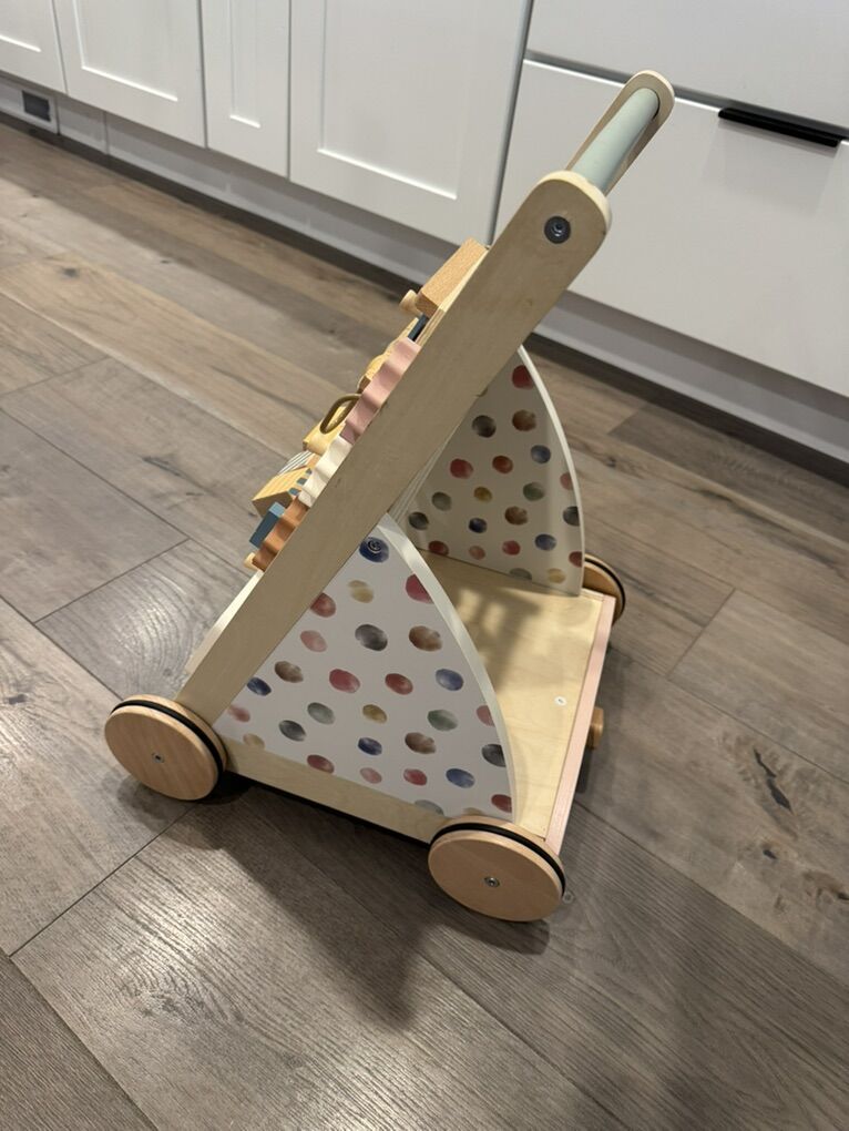 ApplePayBeautiful Tiny Land premium wooden activity walker in excellent condition. This is a high-quality Montessori-style push walker designed to help little ones build balance, coordination, and confidence while walking.