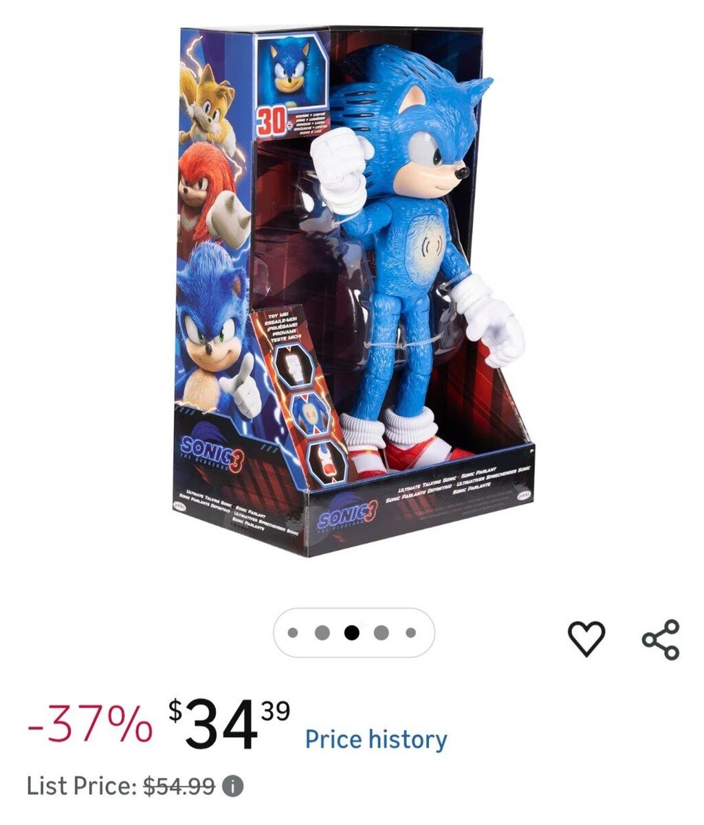 VenmoSonic the Hedgehog 3 Ultimate Talking Sonic 12 inch Figure, Features 30 iconic and humorous phrases and sounds from the movie, light up quills and eyes. Still in the plastic bag it came in. Both grandma's bought it for Christmas, I said I'd return mine and then forgot so I'm just trying to get my money back (so I can spoil him with something else!). $30