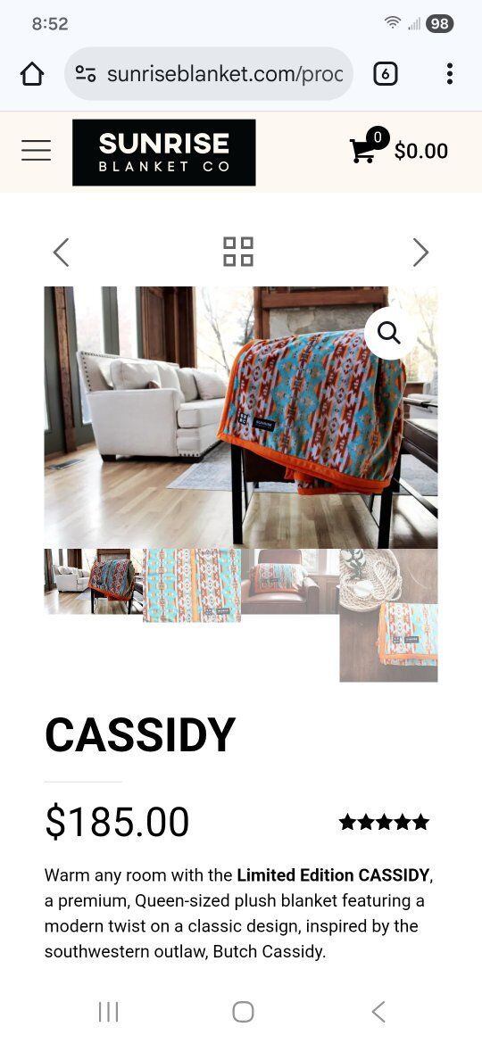 sunrise blanket Cassidy style. daughter recieved this for her wedding. it does not go with her colors in her apartment. It is her lose and your gain