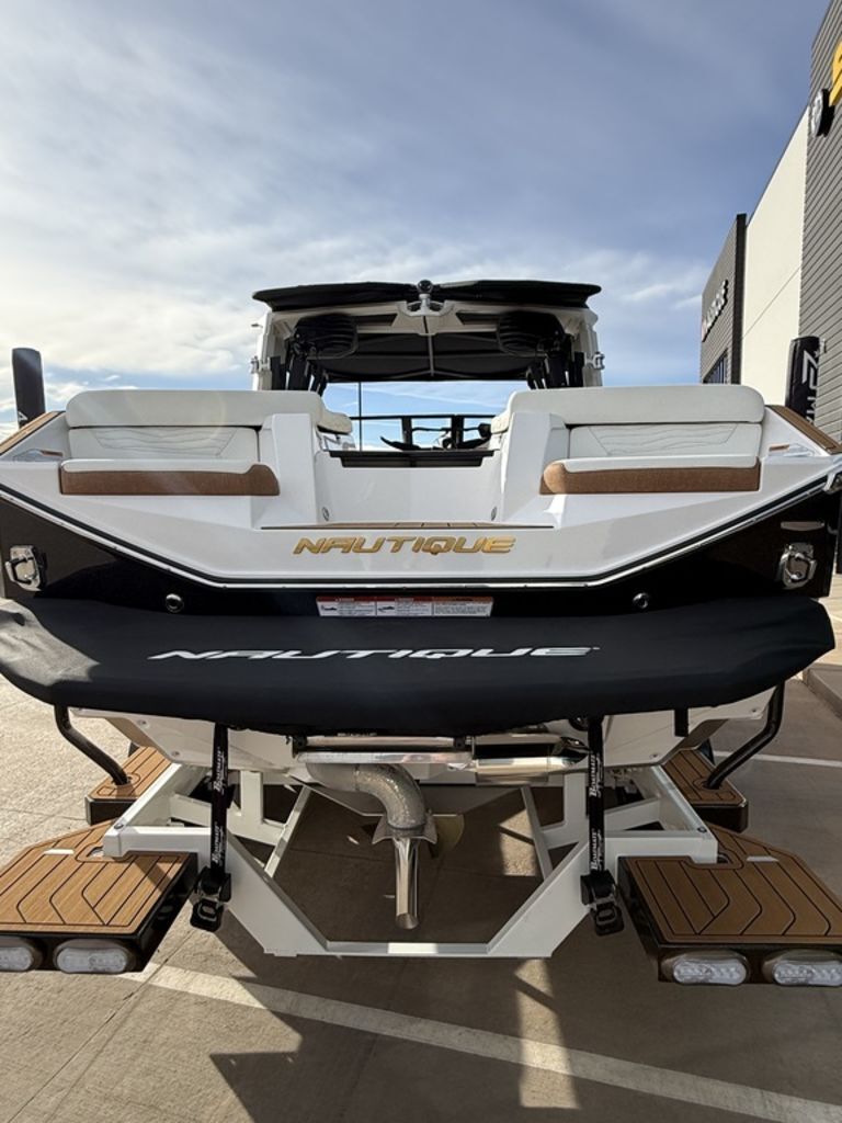 Limited Edition Centennial Black Metal Flake 2025 G25! Loaded with options, very clean only 53 hours! Telescoping tower, Maps, Battery Maintenance System, Cover/Platform Cover, Supplemental Ballast, Heat/Defrost. Enhanced Courtesy Lighting, Nautique Steer Assist (Thruster), Phender Pros, 1 Set Pillows, Surf Select with Surf Switch, Wireless Charges, Studio Elite with Wavefront 92- 12" subs), Pocket door air dam and triple axle Boatmate trailer. 2025 Nautique Super Air Nautique G25Unleash Your LimitsBe prepared to experience the legend of the G-Series with the all-new Super Air Nautique G25. With a large-scale lounge for spending time with family and friends or for watching all the action behind the boat, the completely redesigned G25 is ready to tackle the largest crews for summer. With a sleek new look, this beautifully crafted wake boat blends innovation and performance perfectly to provide lifelong memories for you and your crew.Features may include:EXTERIORTRANSOM SEATINGWhen it’s time to kick back and relax, check out the rear transom seats aboard the Super Air Nautique G25. Adjacent to the swim platform, these rear-facing seats allow you to spend time with family and friends while they are in the water.DOCKING LIGHTSTaking visual cues from the Paragon models, the G25 boasts brand new, ultra-bright LED docking lights that are sure to turn heads. These light arrays are utilized as docking and daytime running lights, providing great visibility when maneuvering into your dock or slip at night and a stunning, unique look during the day.HULL DESIGNThe Super Air Nautique G25 is a continuation of the signature Nautique aesthetic, bringing together the overall look and feel that the Ski Nautique and G23 Paragon have taken to the line-up. The sleek lines, faceted hull sides, aggressive styling and timeless Nautique looks command attention wherever you go.INTERIORTANDEM SPOKE LEATHER STEERING WHEELUpgrade the steering wheel on the G25 to our Tandem Spoke Leather Steering Wheel. Hand-stitched and made in Italy, this steering wheel option is the epitome of luxury as it provides comfort and control as you drive your G25 down the lake.REVERSIBLE STERN SEATQuickly slide out and flip up the reversible stern seat on the Super Air Nautique G25 so you can comfortably watch all the action. When it’s stowed away, it also acts as a lounge seat and Nauteak Non-Skid covered step to get to the back-transom area of the G25.BOWThe bow of the G25 is an amazing place to spend a gorgeous summer day. Two lounge seats with optional flip-up armrests on either side complete this comfortable place to lounge. Flip up the seats for storage underneath, utilize the cup holders in various places and let the JL Audio® speakers keep the vibe alive with its own zone for your convenience.PERFORMANCEINTEGRATED STEERING ASSISTA thruster mounted to the stern of the G25, the popular Integrated Steering Assist option provides exceptional maneuverability. An option that’s perfect if you are docking in tight quarters, want to reverse in a straight line or are simply looking for more control on the open lake. Steering Assist allows you to quickly move the transom of the boat left or right, and significantly improves the overall driving experience.SURF PIPEStandard on the Super Air Nautique G25 is our Nautique Surf Pipe. This takes the steam and emissions from the engine down into the prop stream to bubble up behind the surfer, so you always have a great experience while you ride.