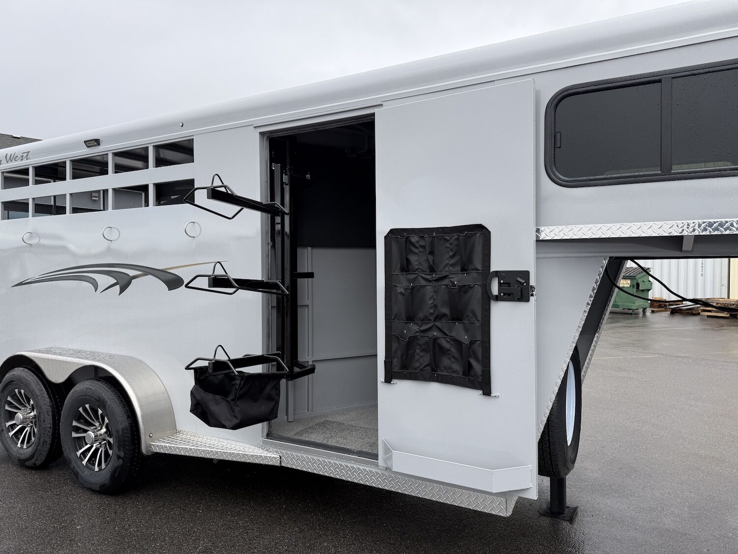 Convenience Package - swing-out saddle rack, spare tire, water tank, door mounted tack organizer, sport bag, load light each side and rear gate